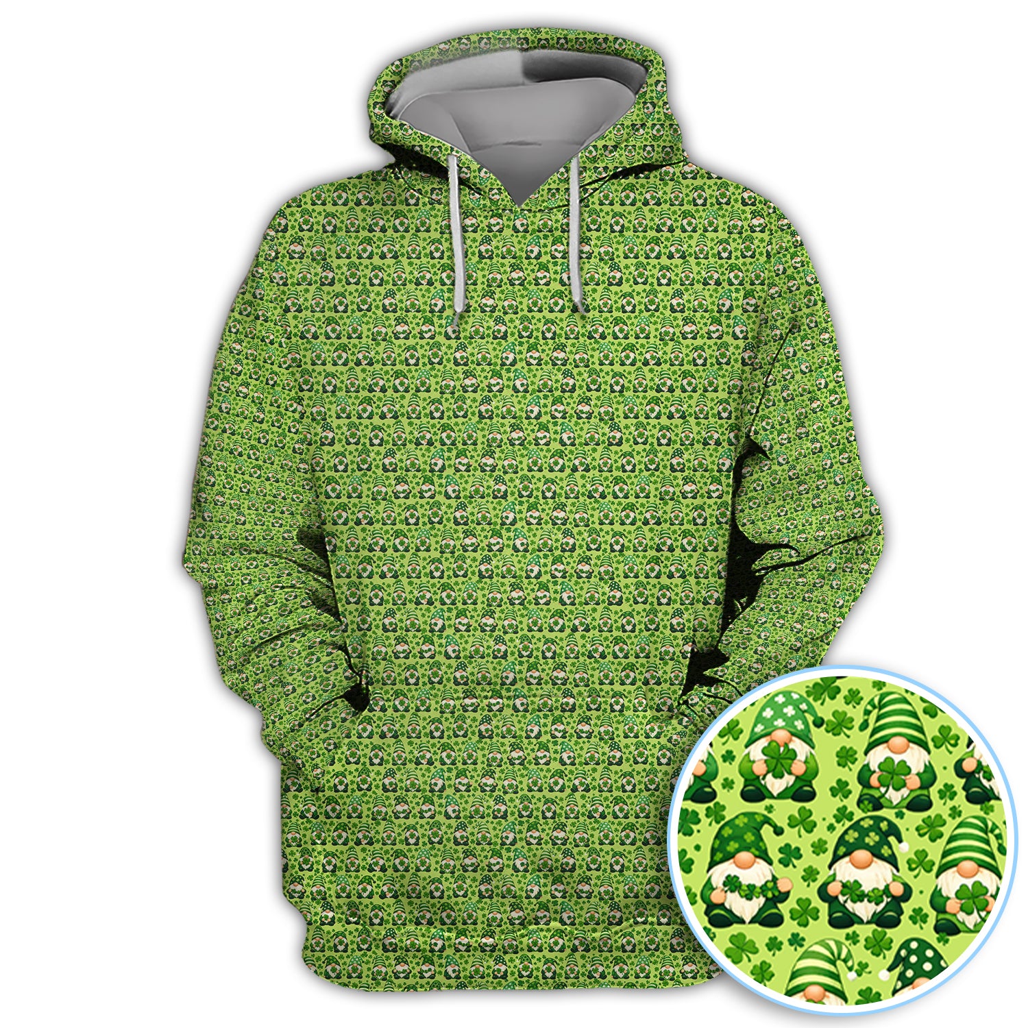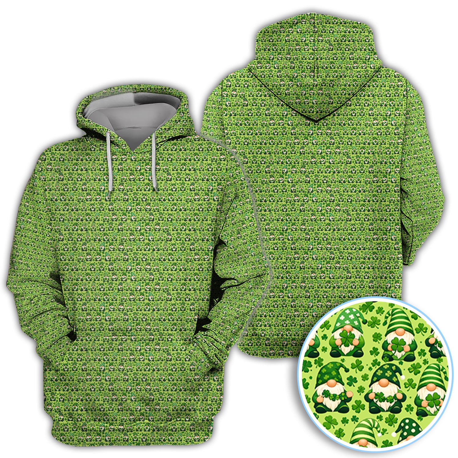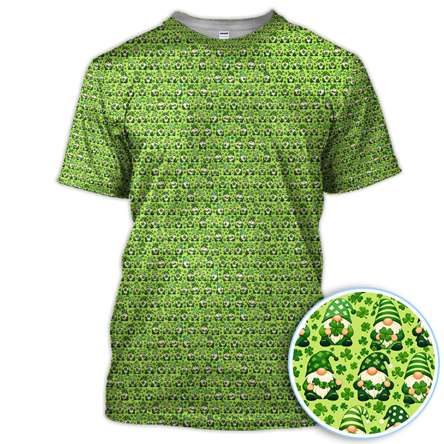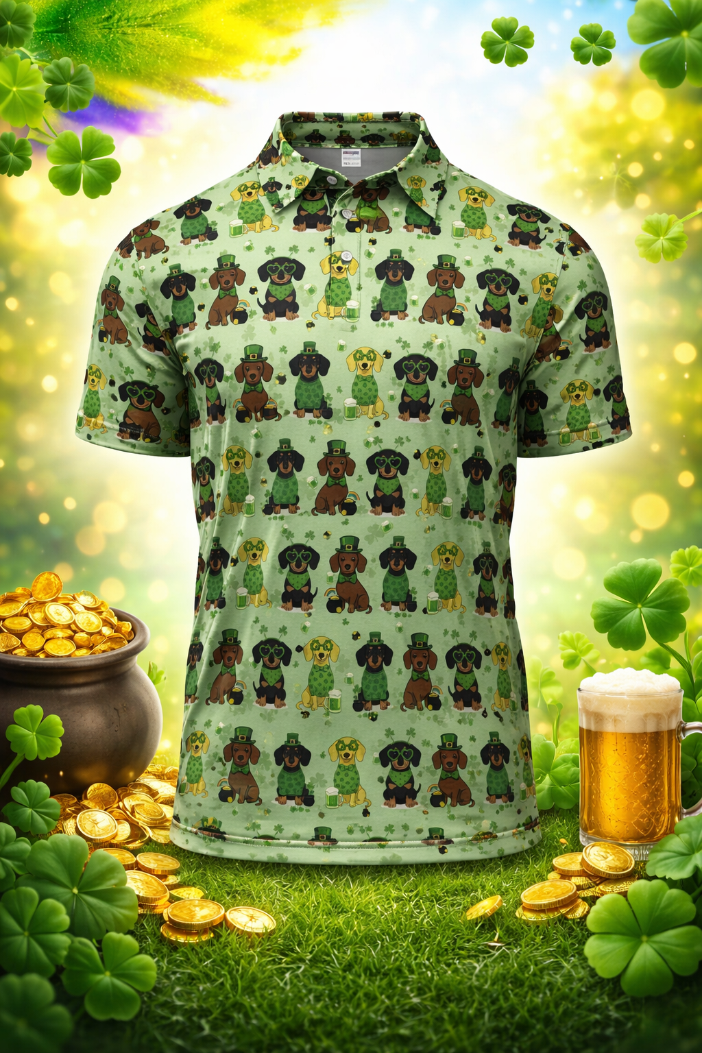 St Patrick’s Day Gnome Pattern Golf Shirt, Green Shamrock Golf Polos For Golfer