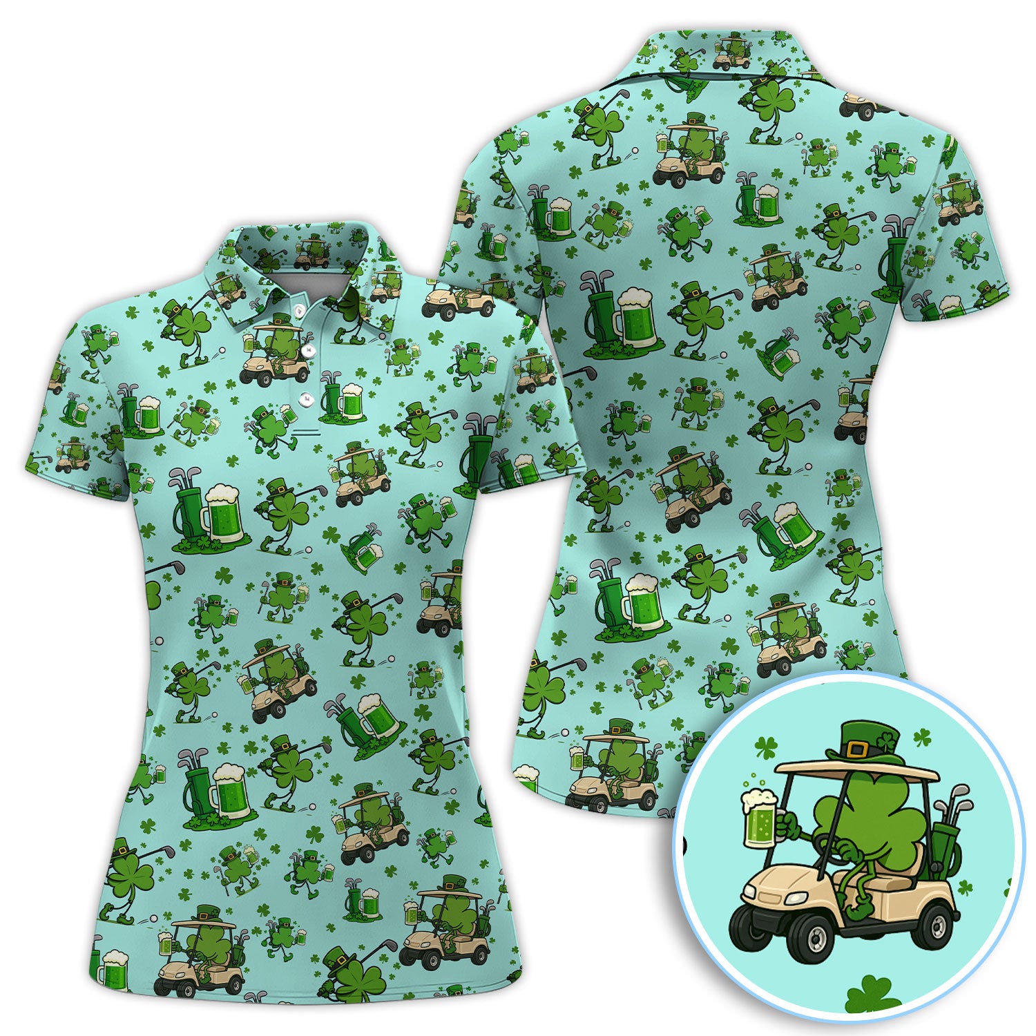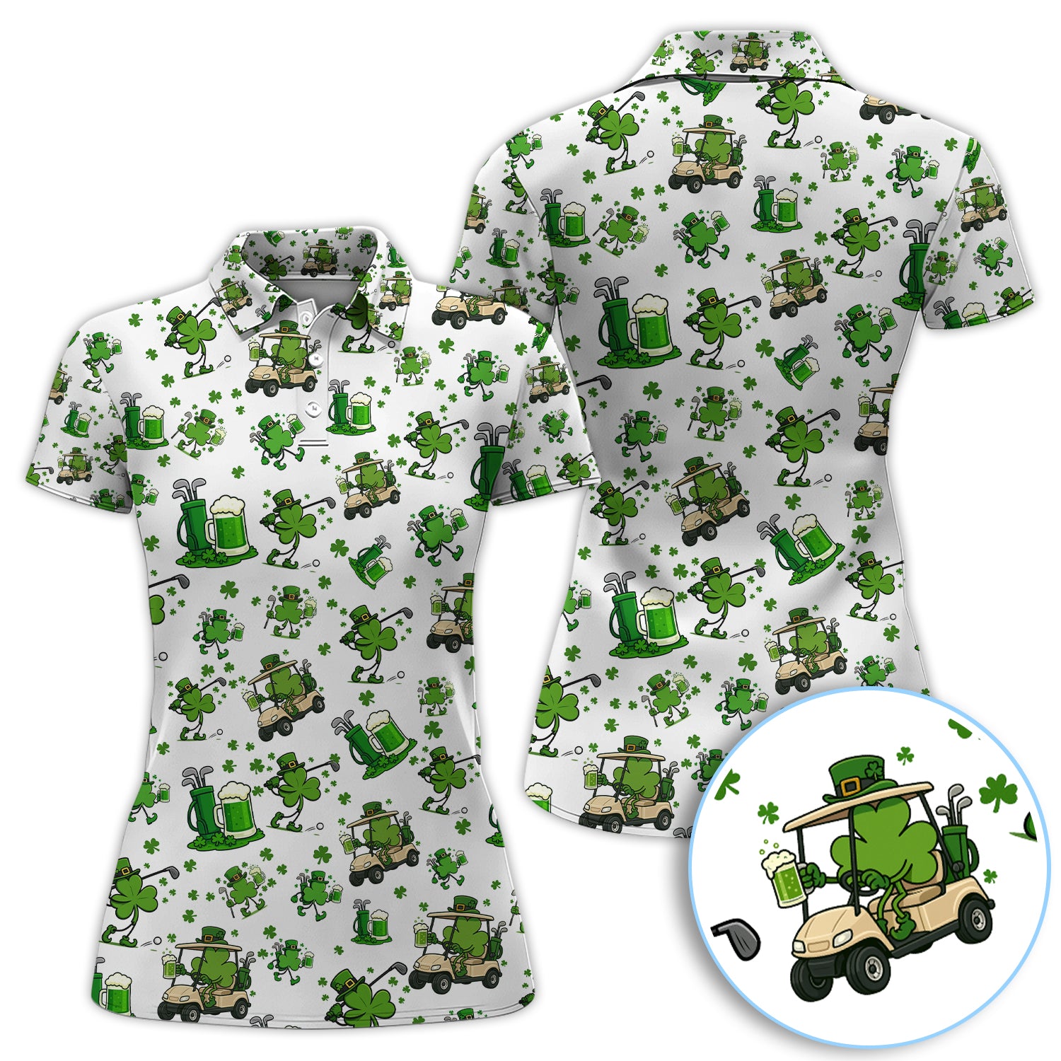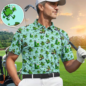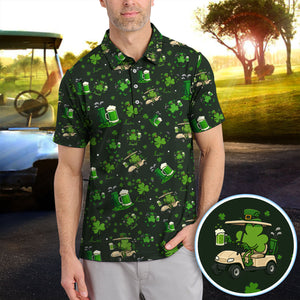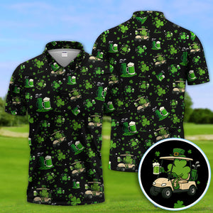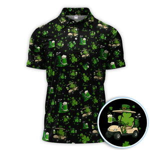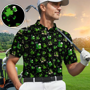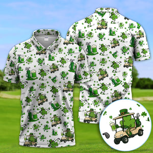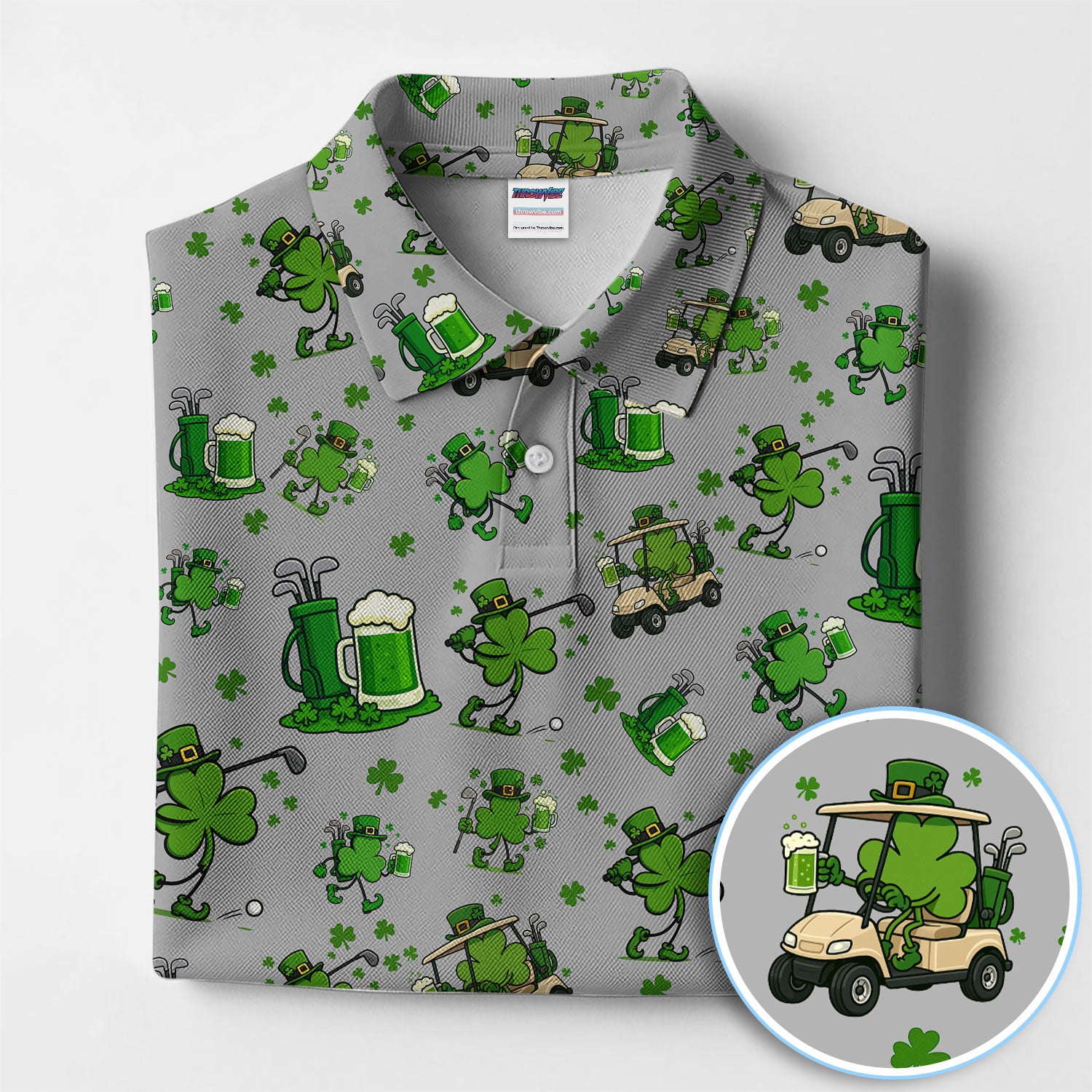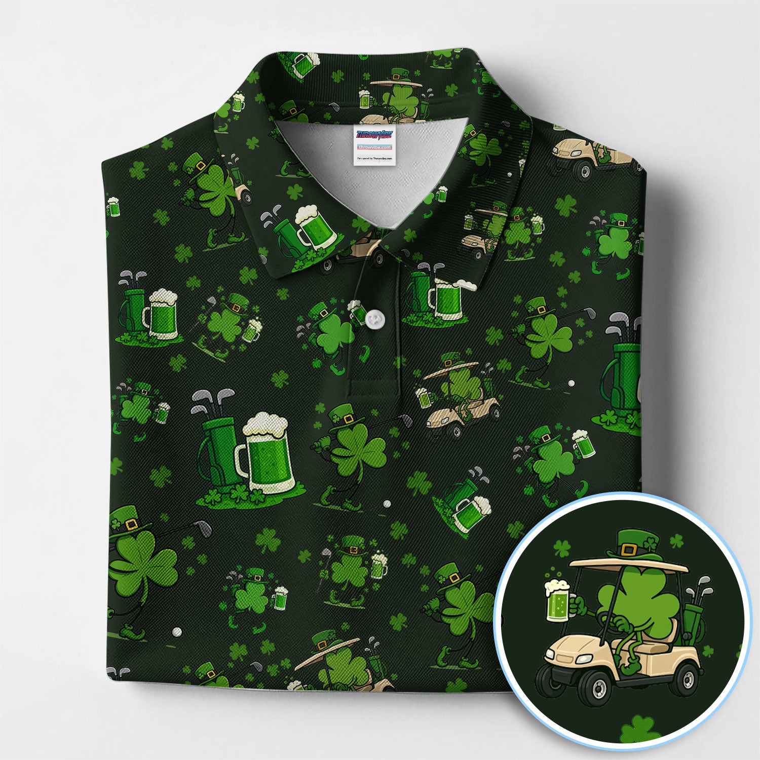 St. Patrick’s Day Pattern Golf Shirt, Funny Irish Golf Cart Polos, Lucky Shamrock Golf Shirt For Men