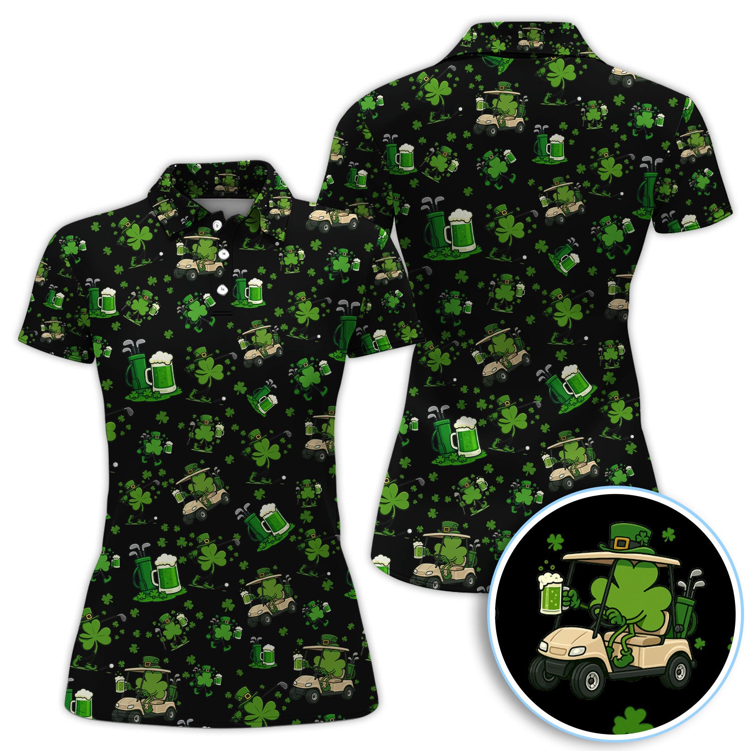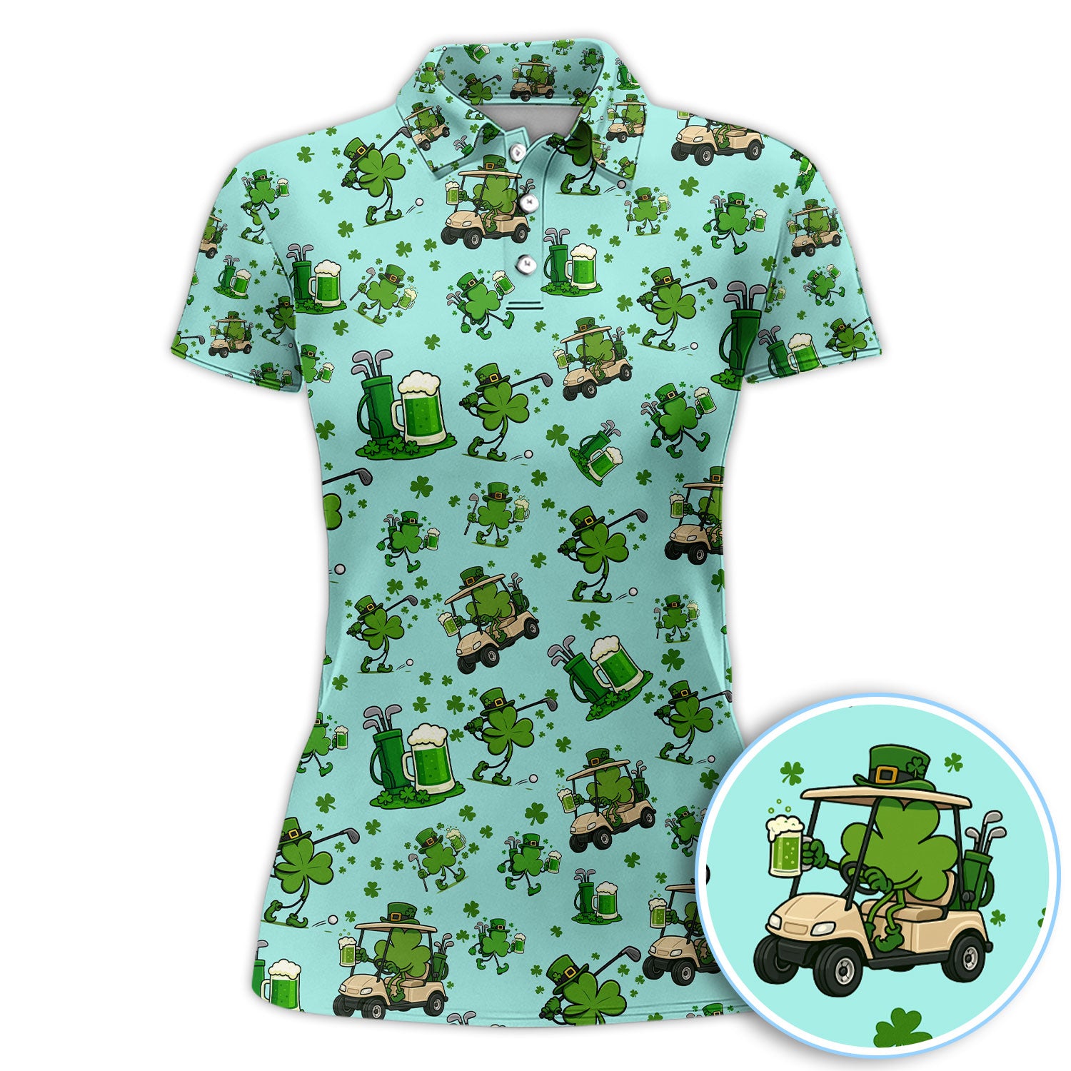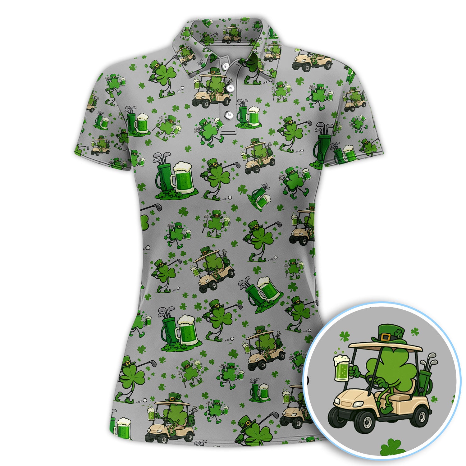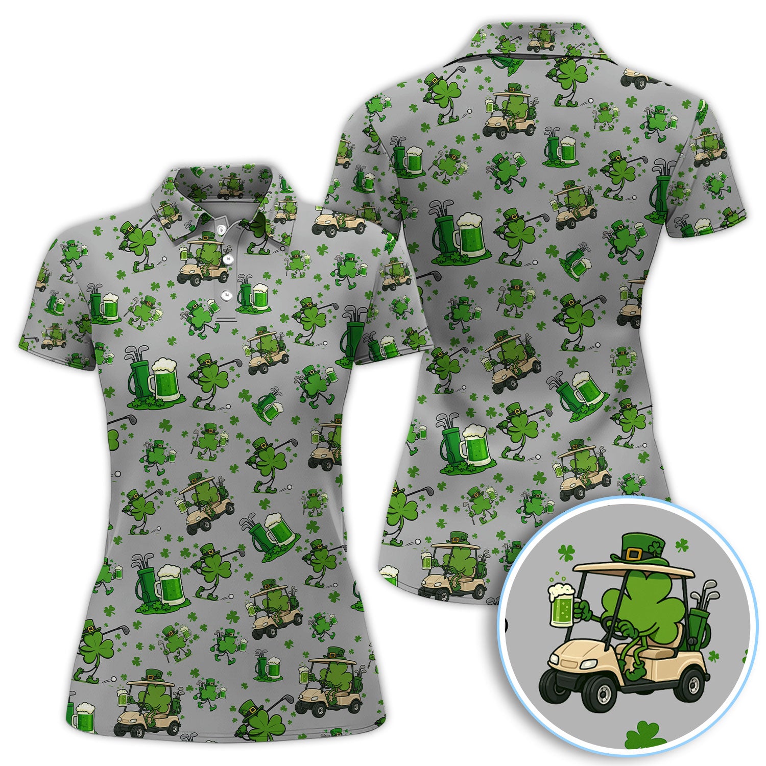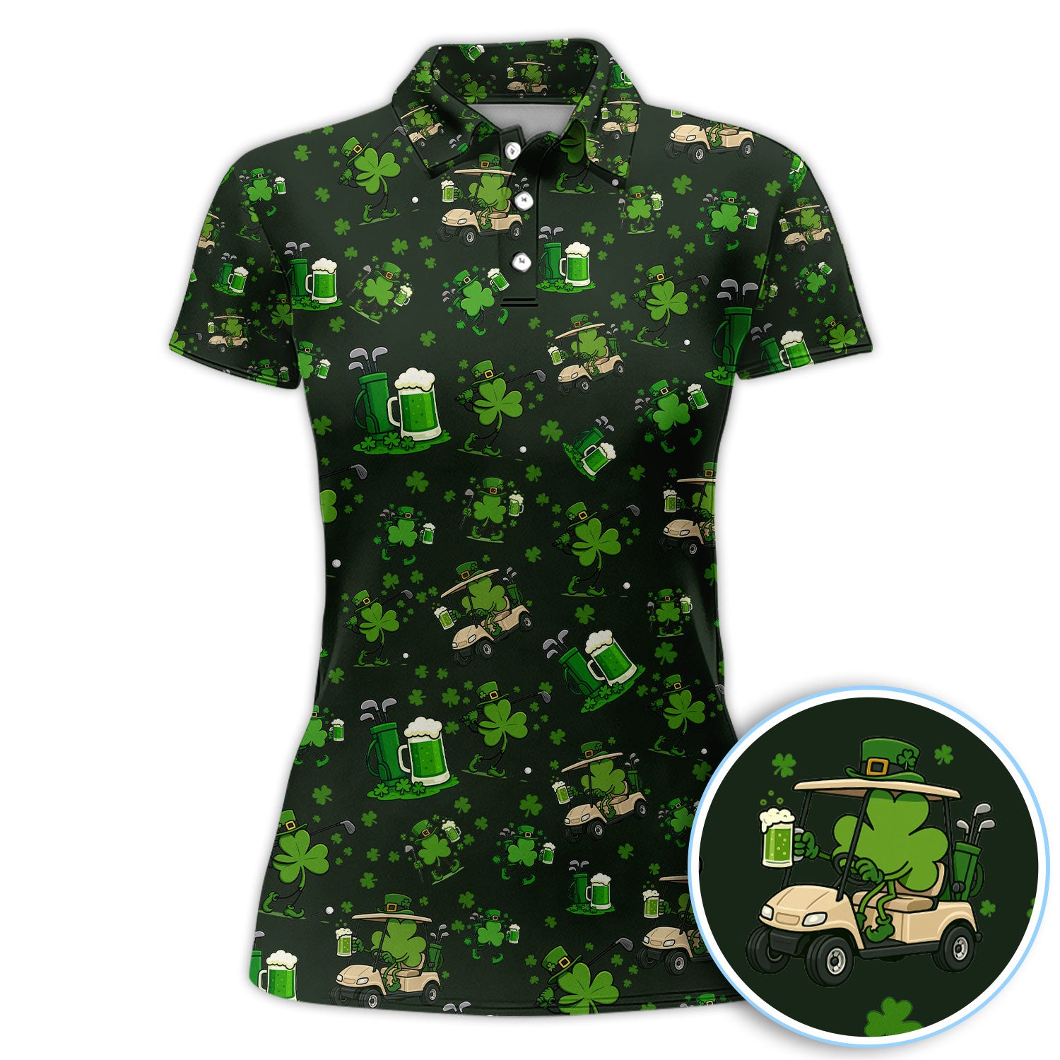 St. Patrick’s Day Pattern Golf Shirt, Funny Irish Golf Cart Polos, Lucky Shamrock Golf Shirt For Men