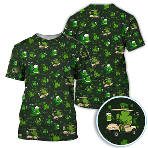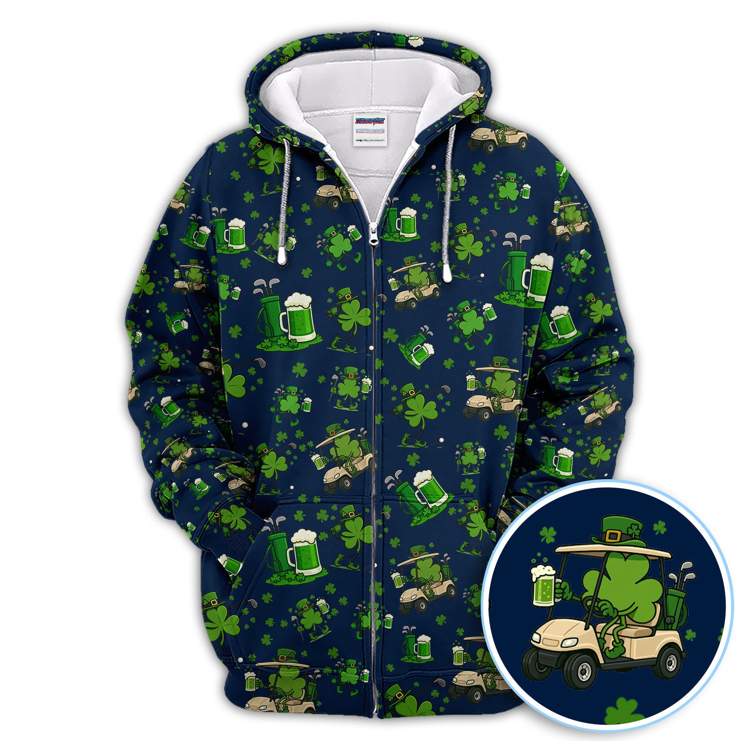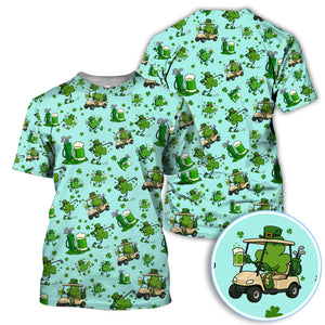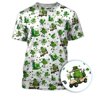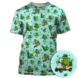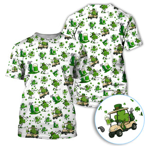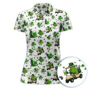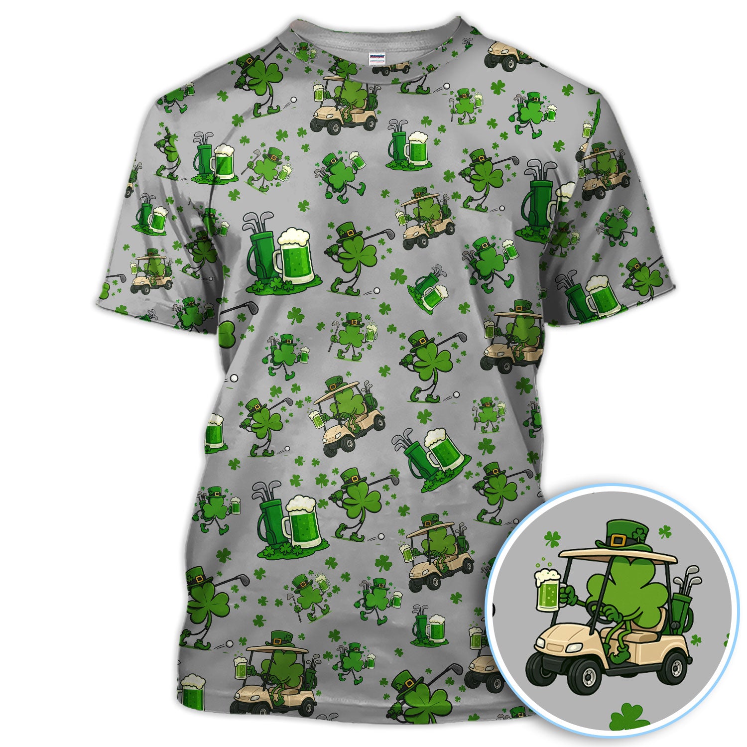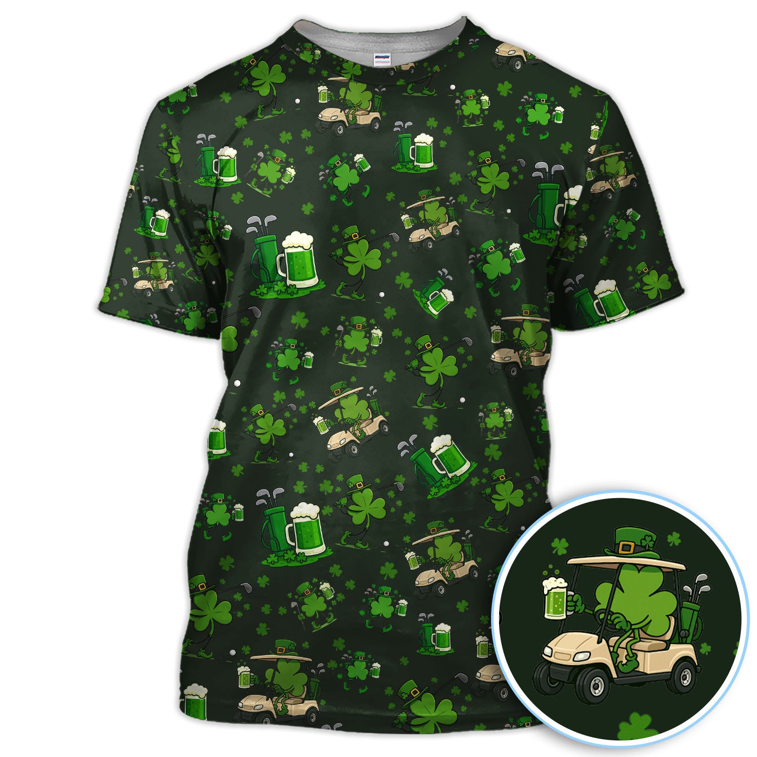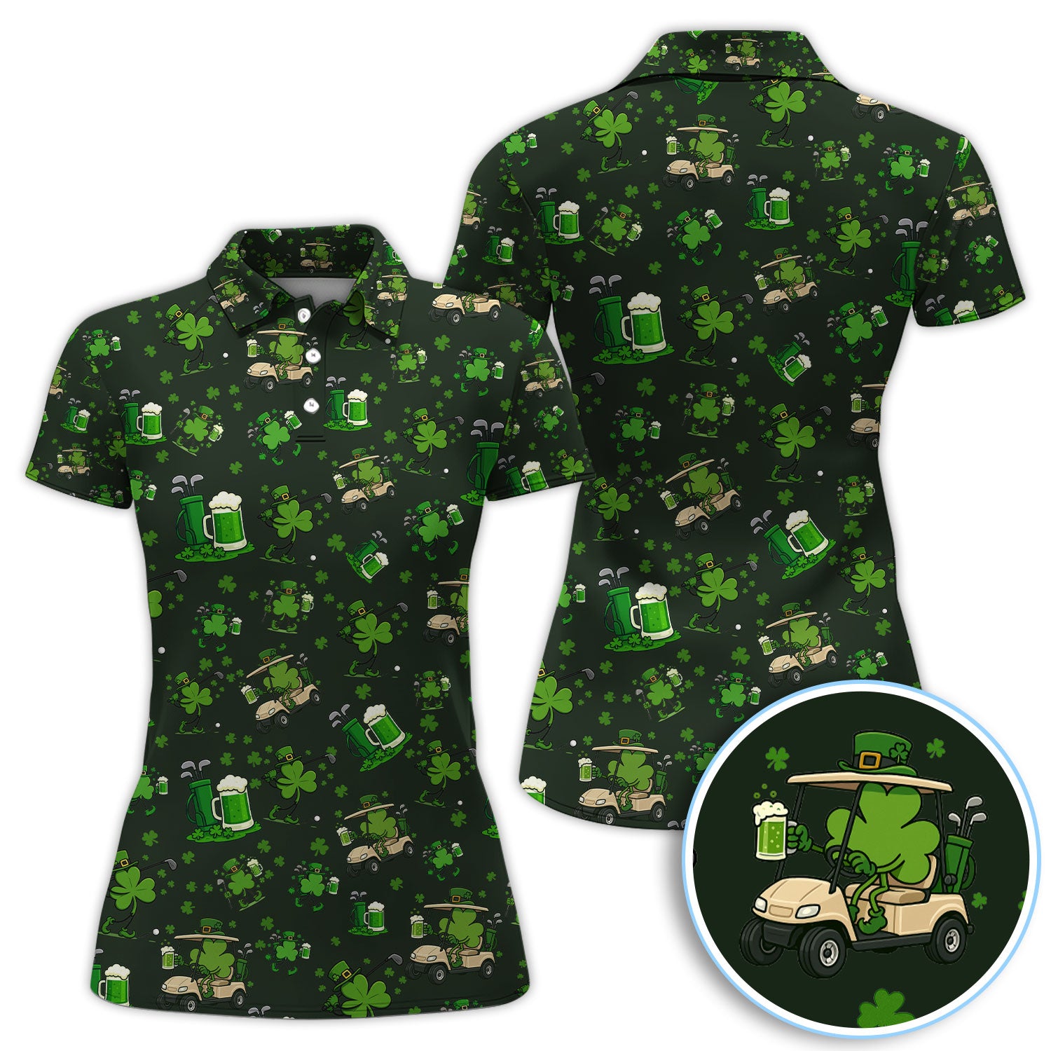 St. Patrick’s Day Pattern Golf Shirt, Funny Irish Golf Cart Polos, Lucky Shamrock Golf Shirt For Men