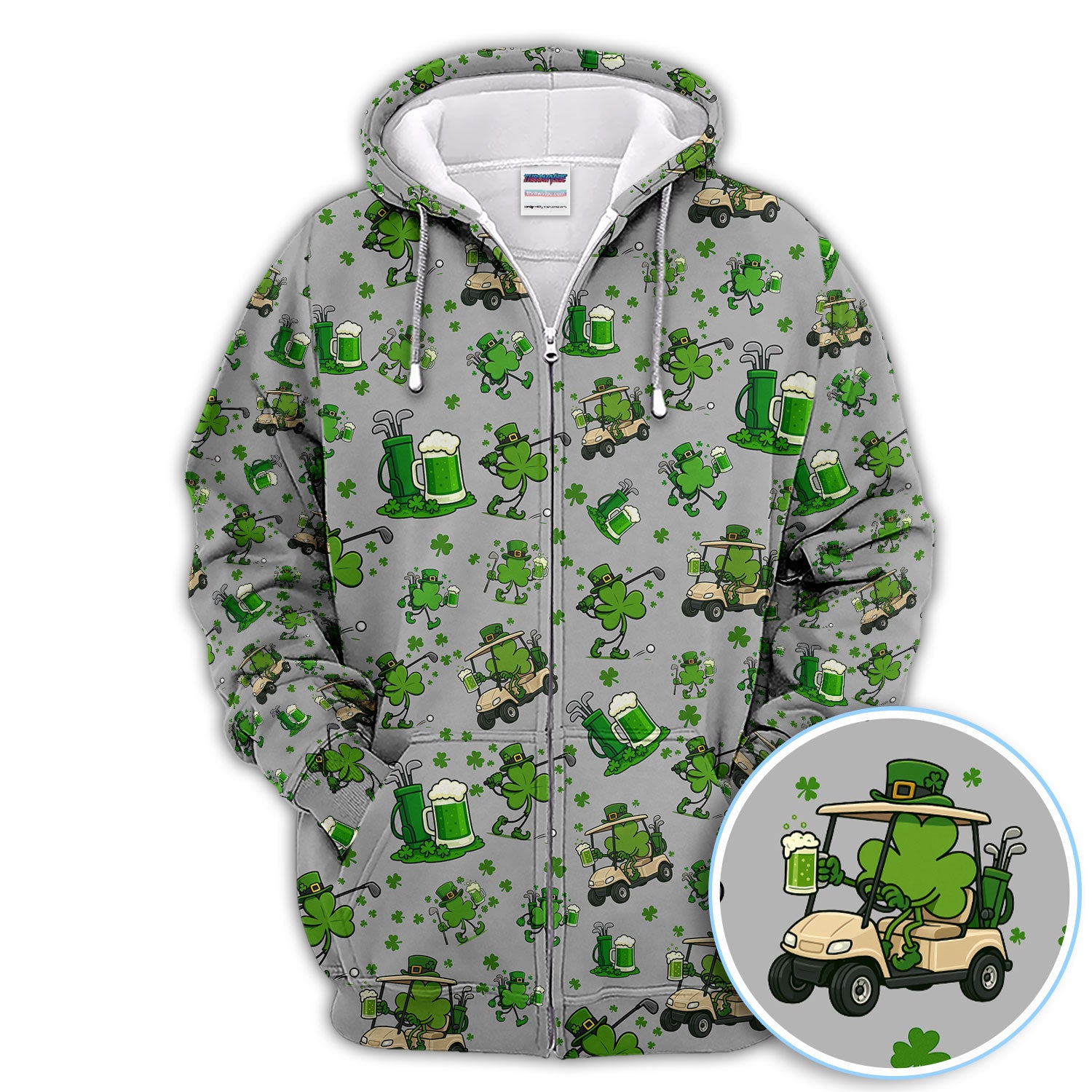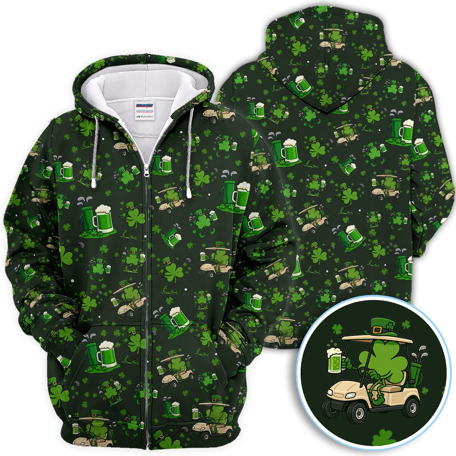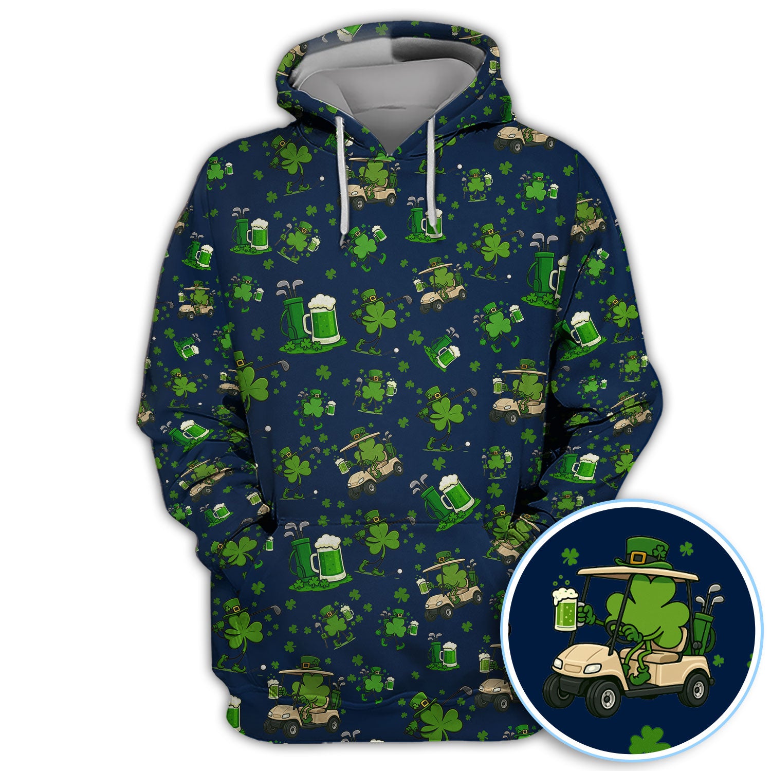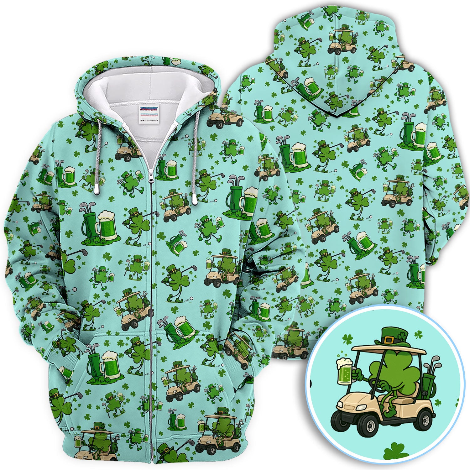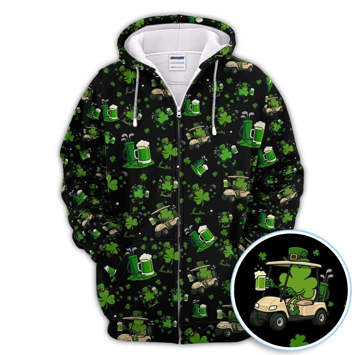 St. Patrick’s Day Pattern Golf Shirt, Funny Irish Golf Cart Polos, Lucky Shamrock Golf Shirt For Men