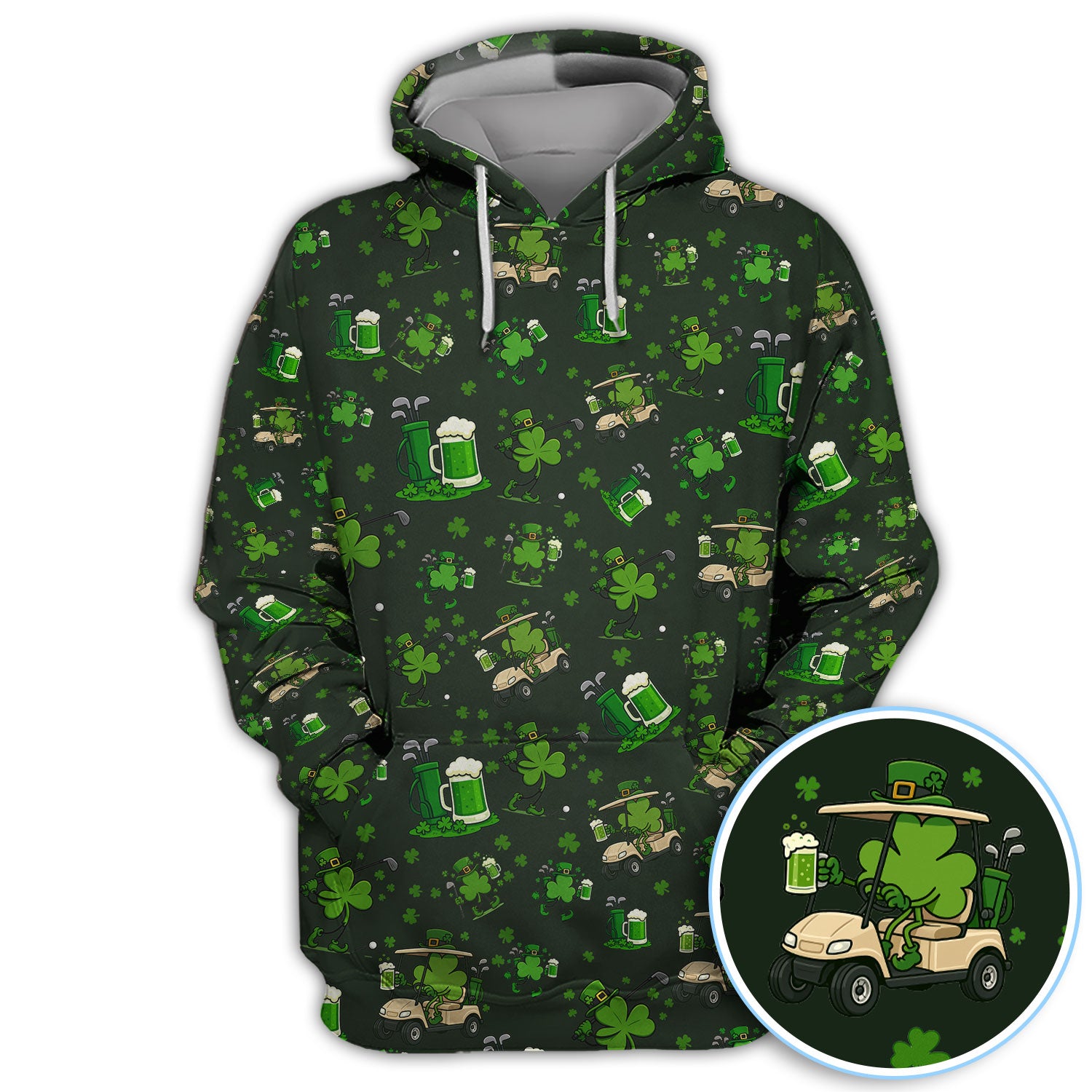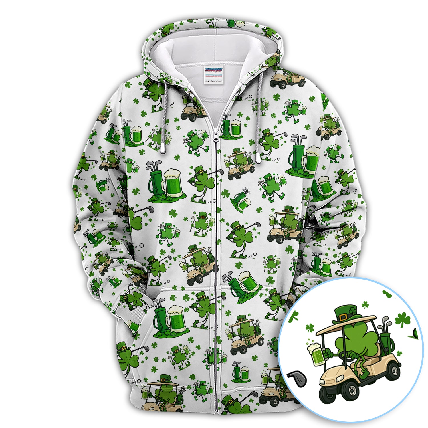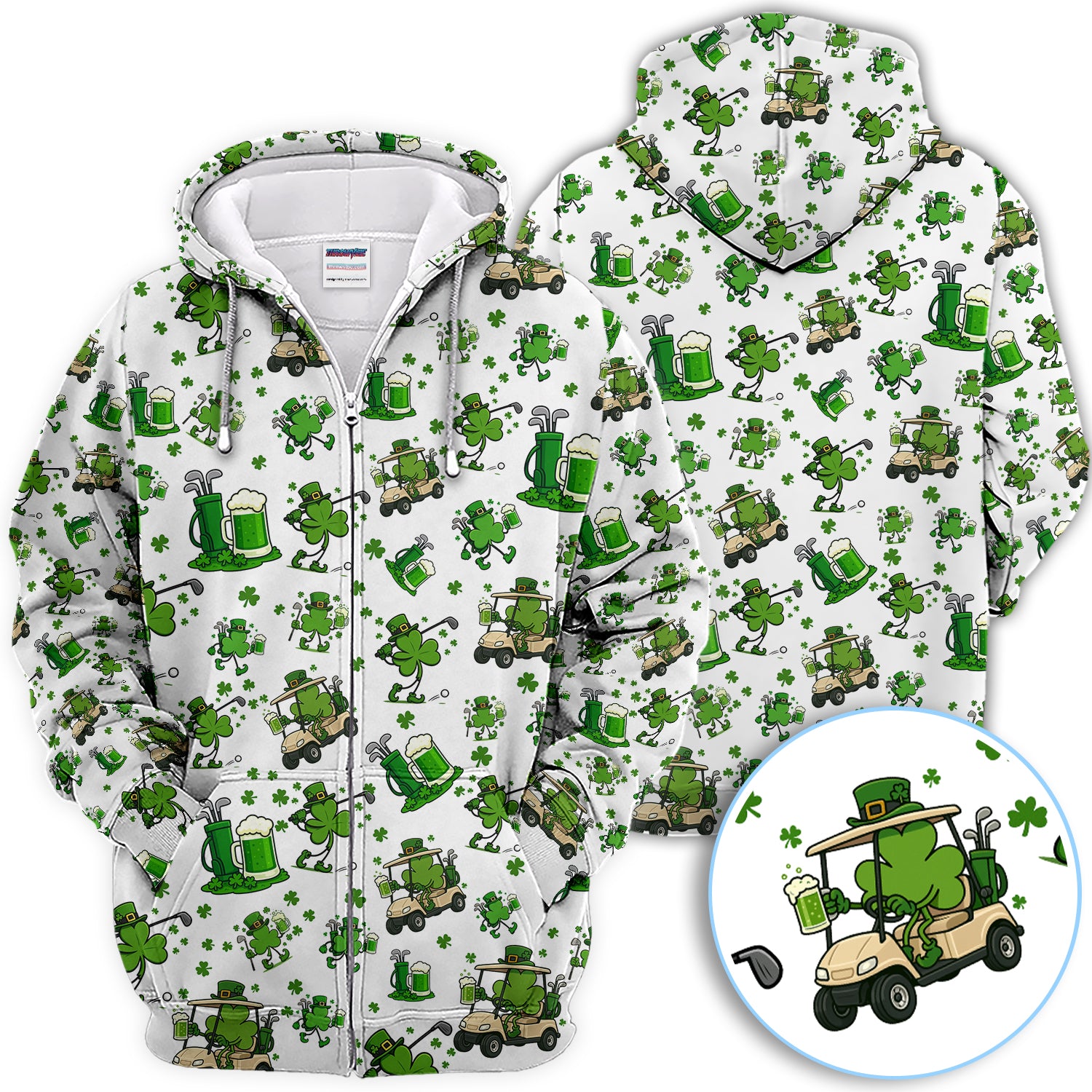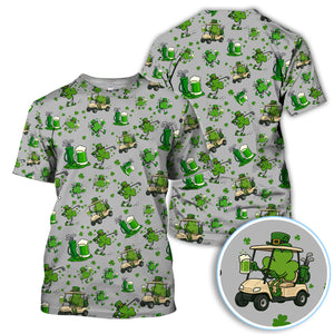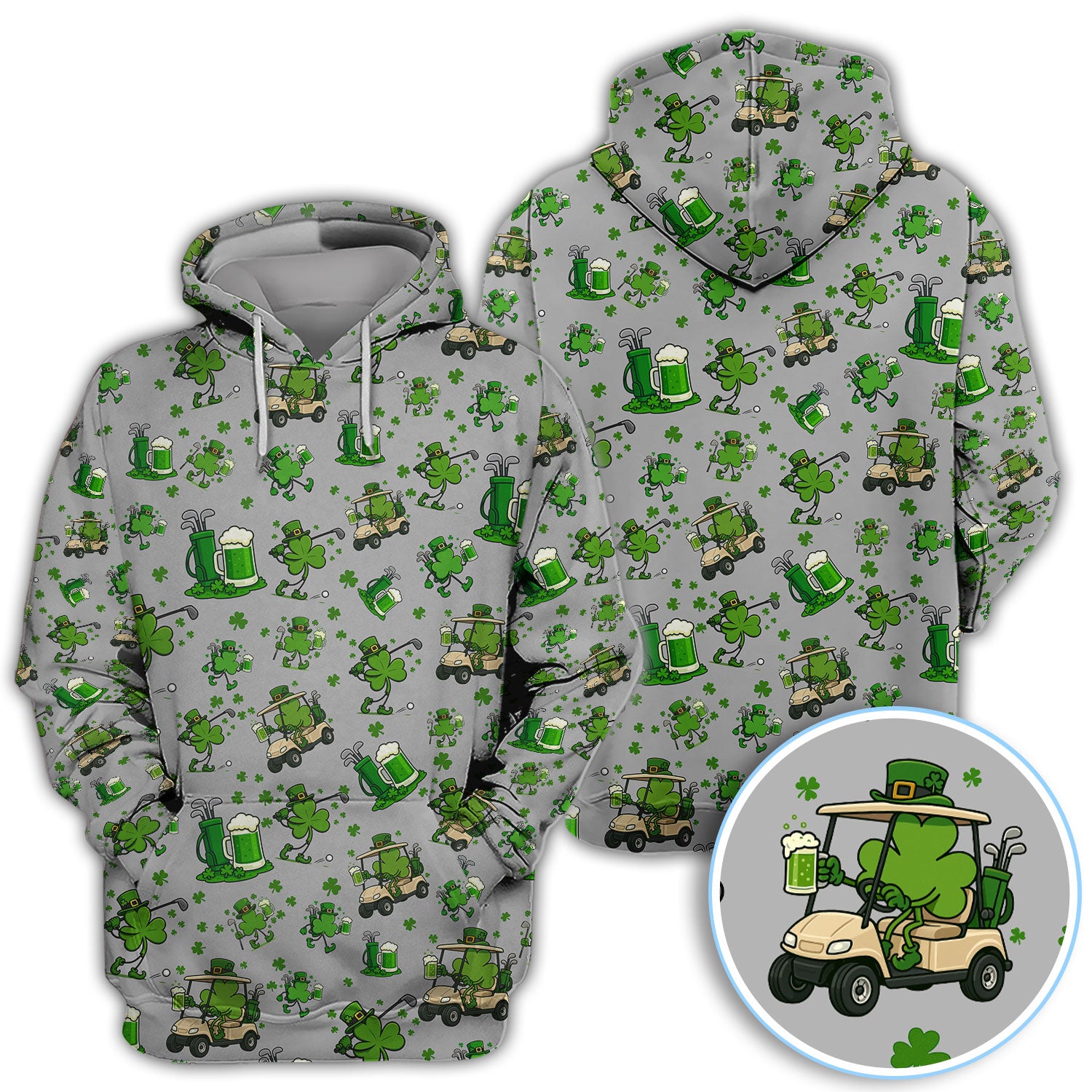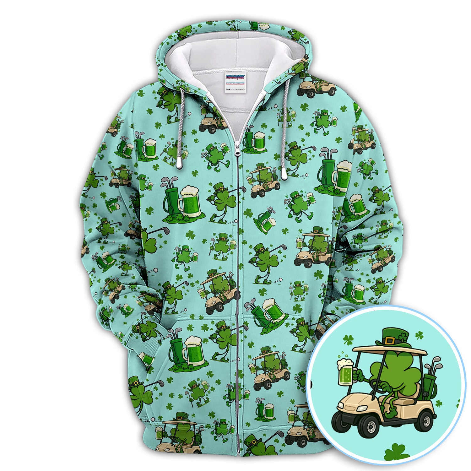 St. Patrick’s Day Pattern Golf Shirt, Funny Irish Golf Cart Polos, Lucky Shamrock Golf Shirt For Men