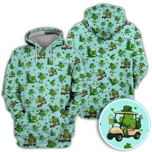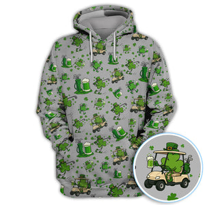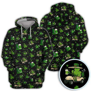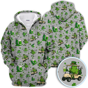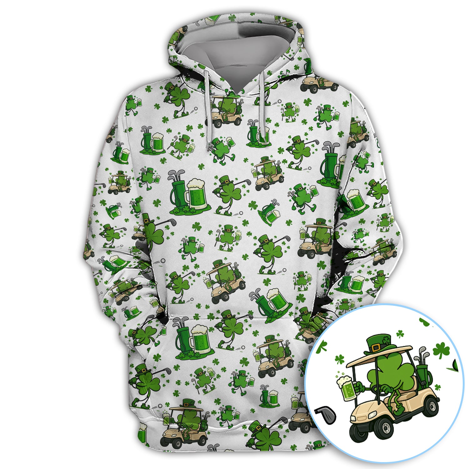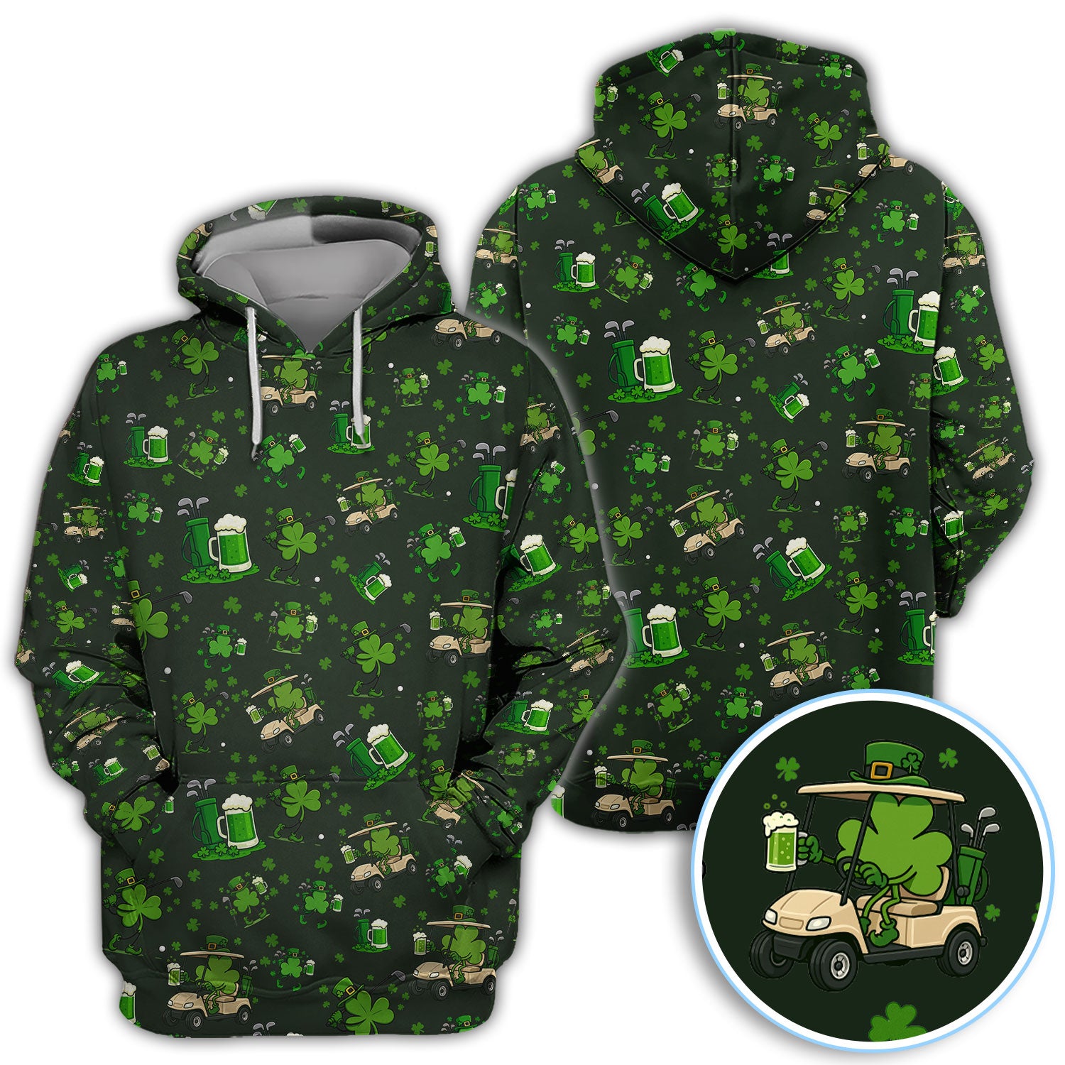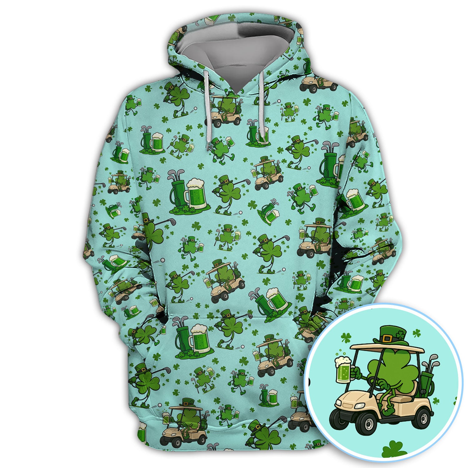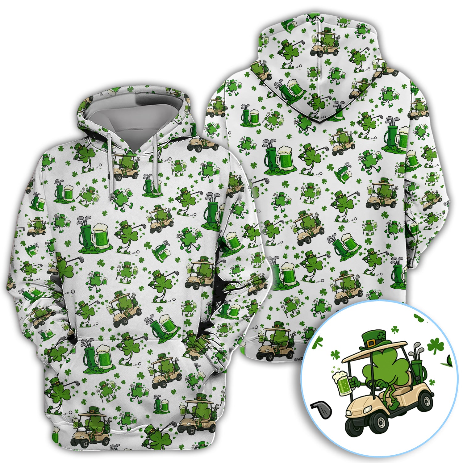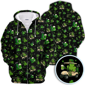 St. Patrick’s Day Pattern Golf Shirt, Funny Irish Golf Cart Polos, Lucky Shamrock Golf Shirt For Men