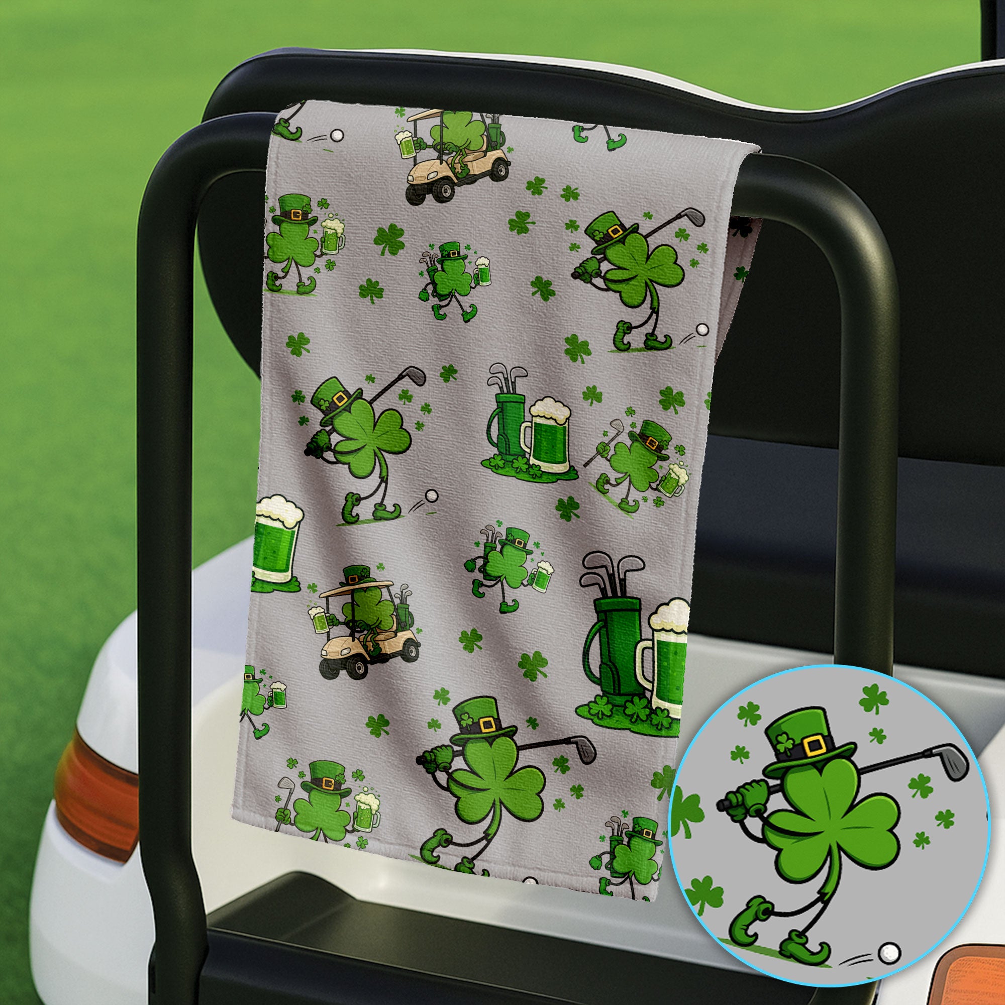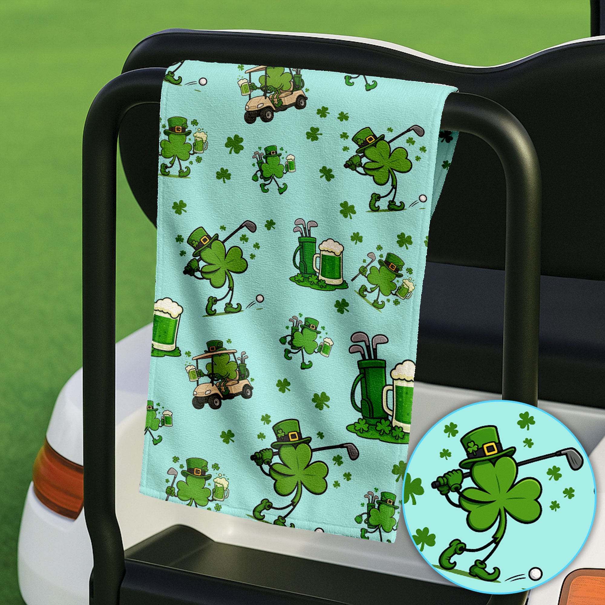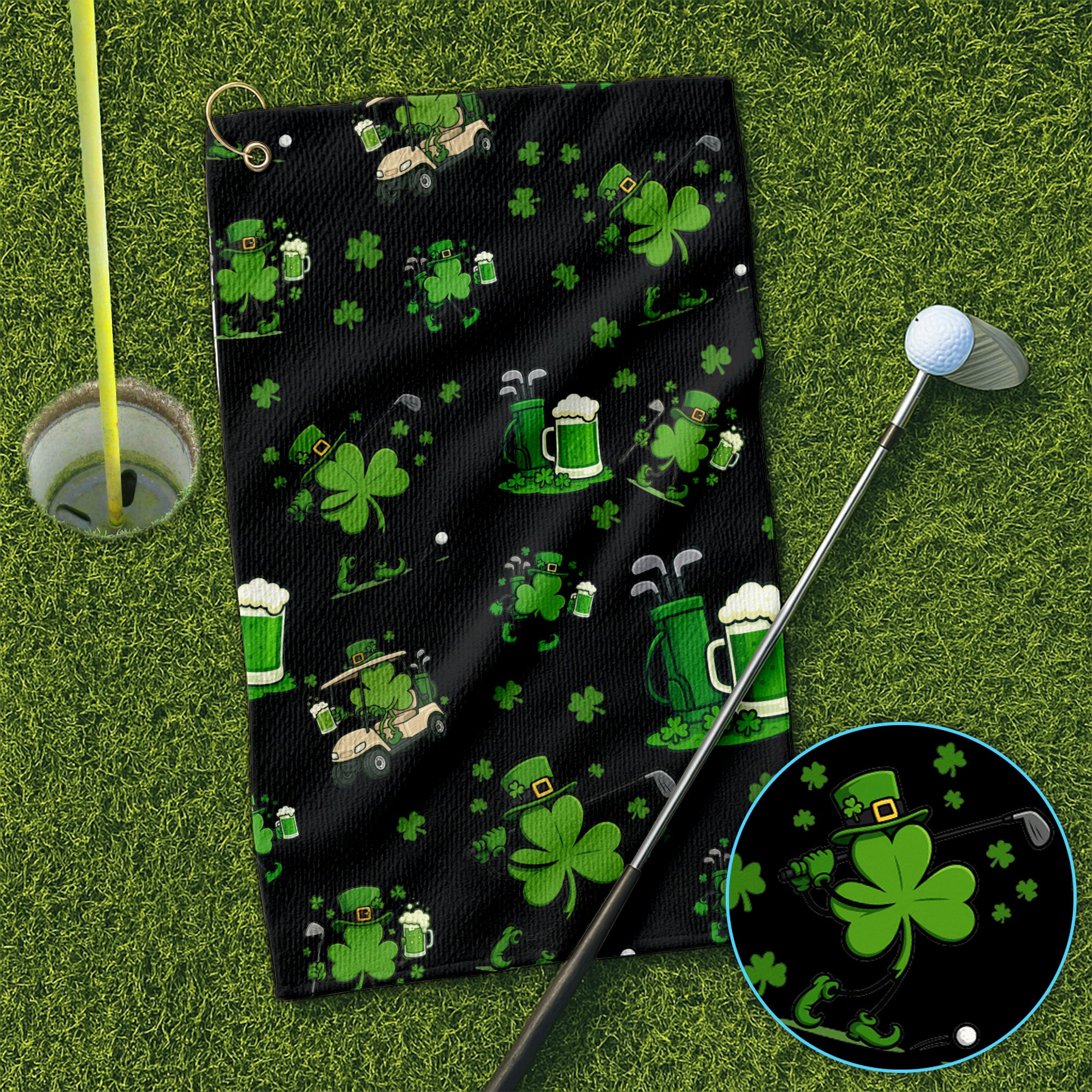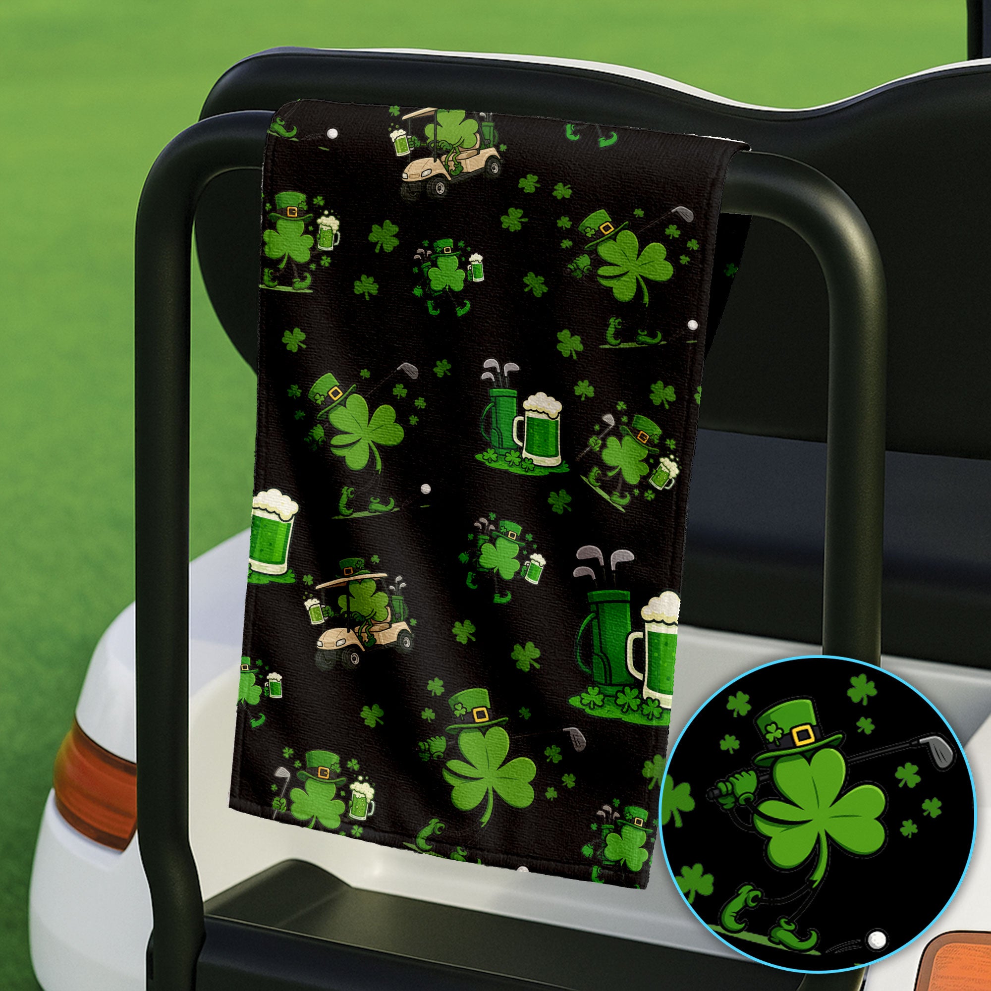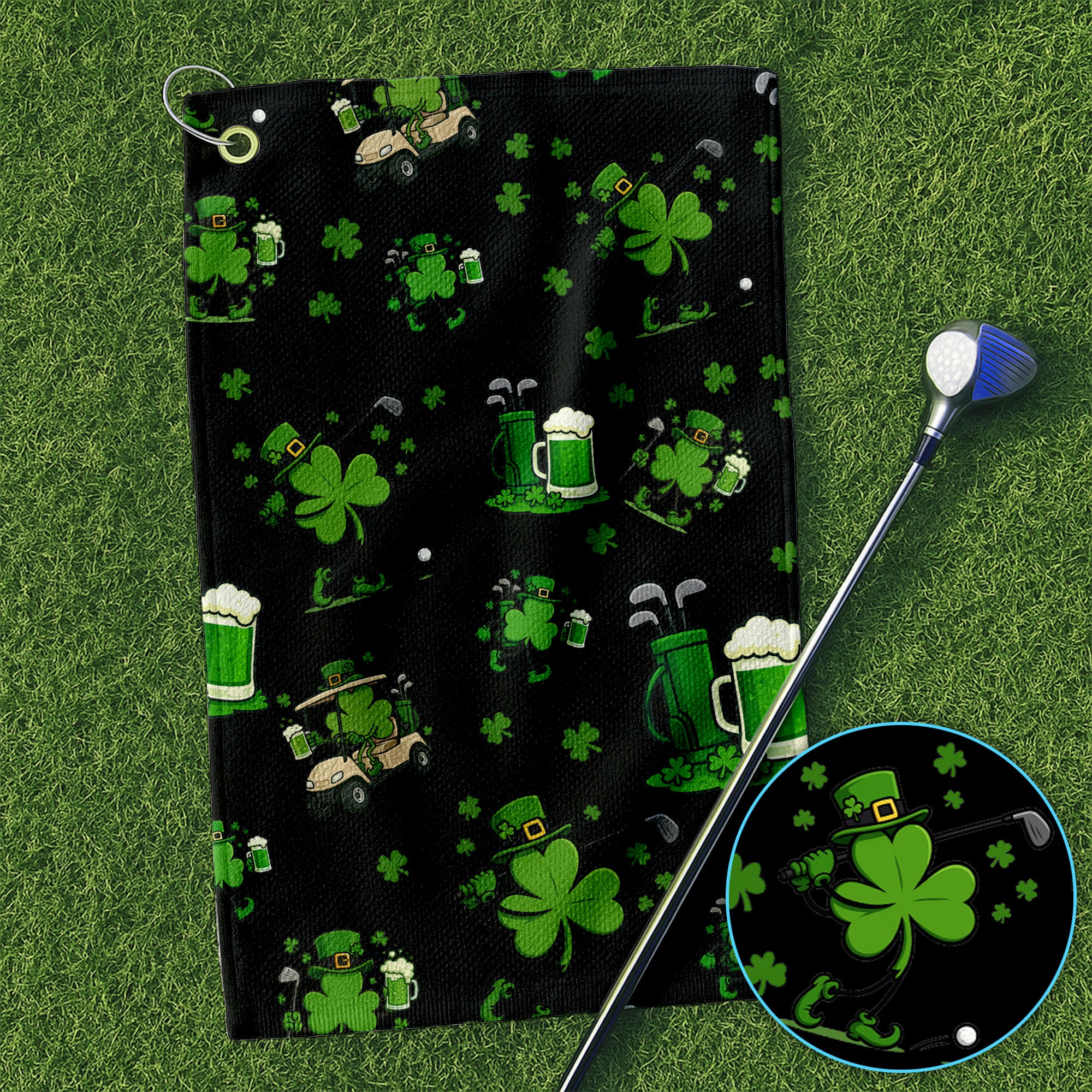 St. Patrick’s Day Pattern Golf Towel, Funny Irish Golf Cart Towels, Lucky Shamrock Golf TowelFor Men