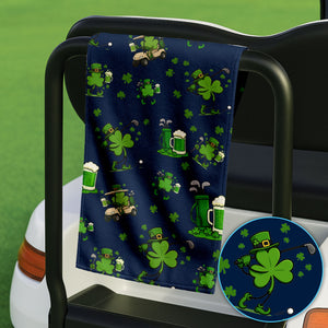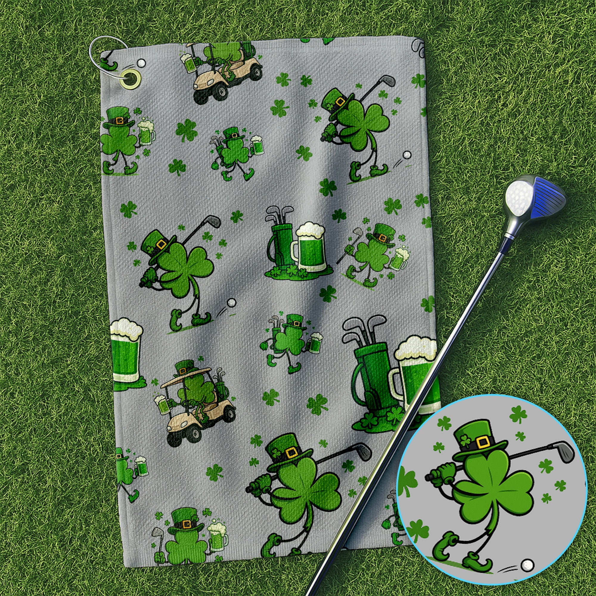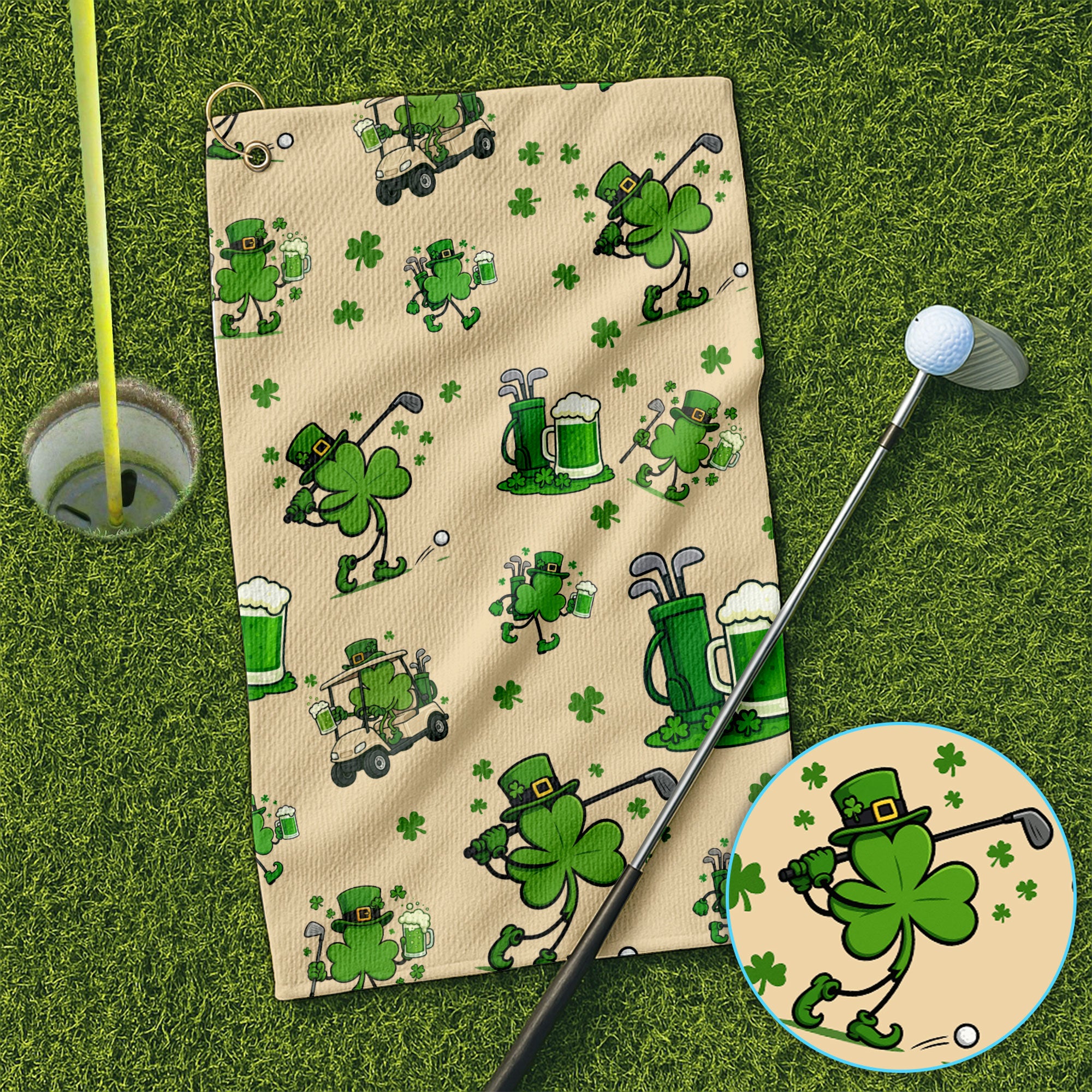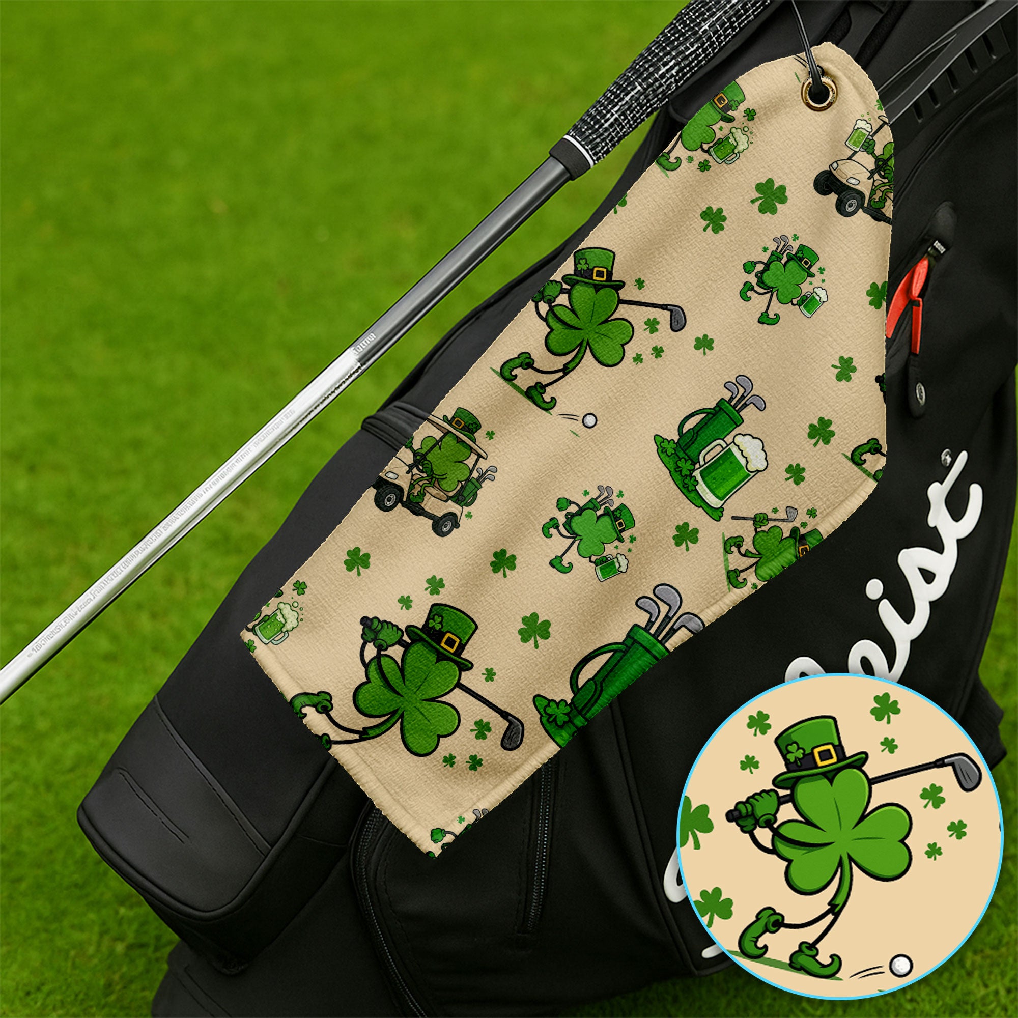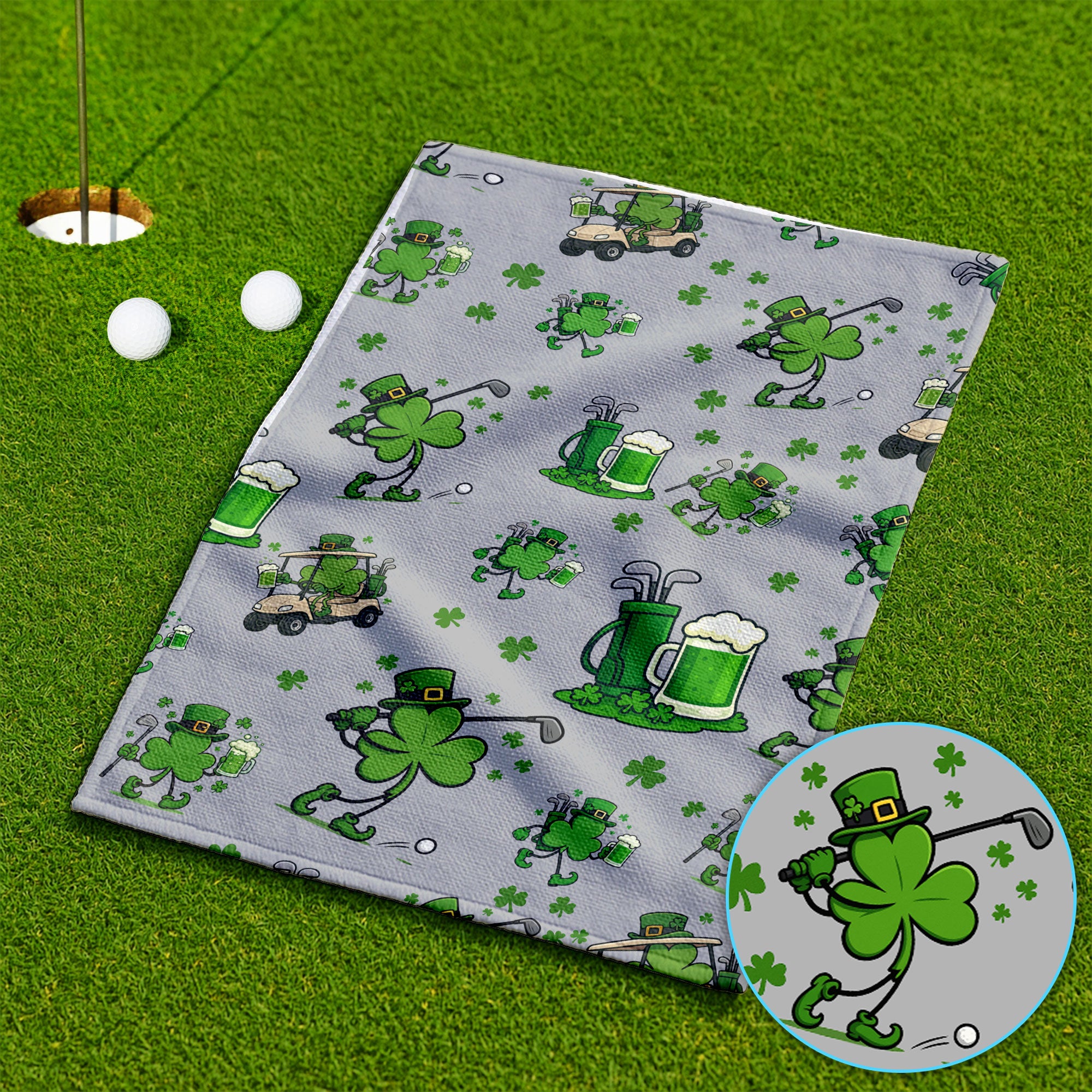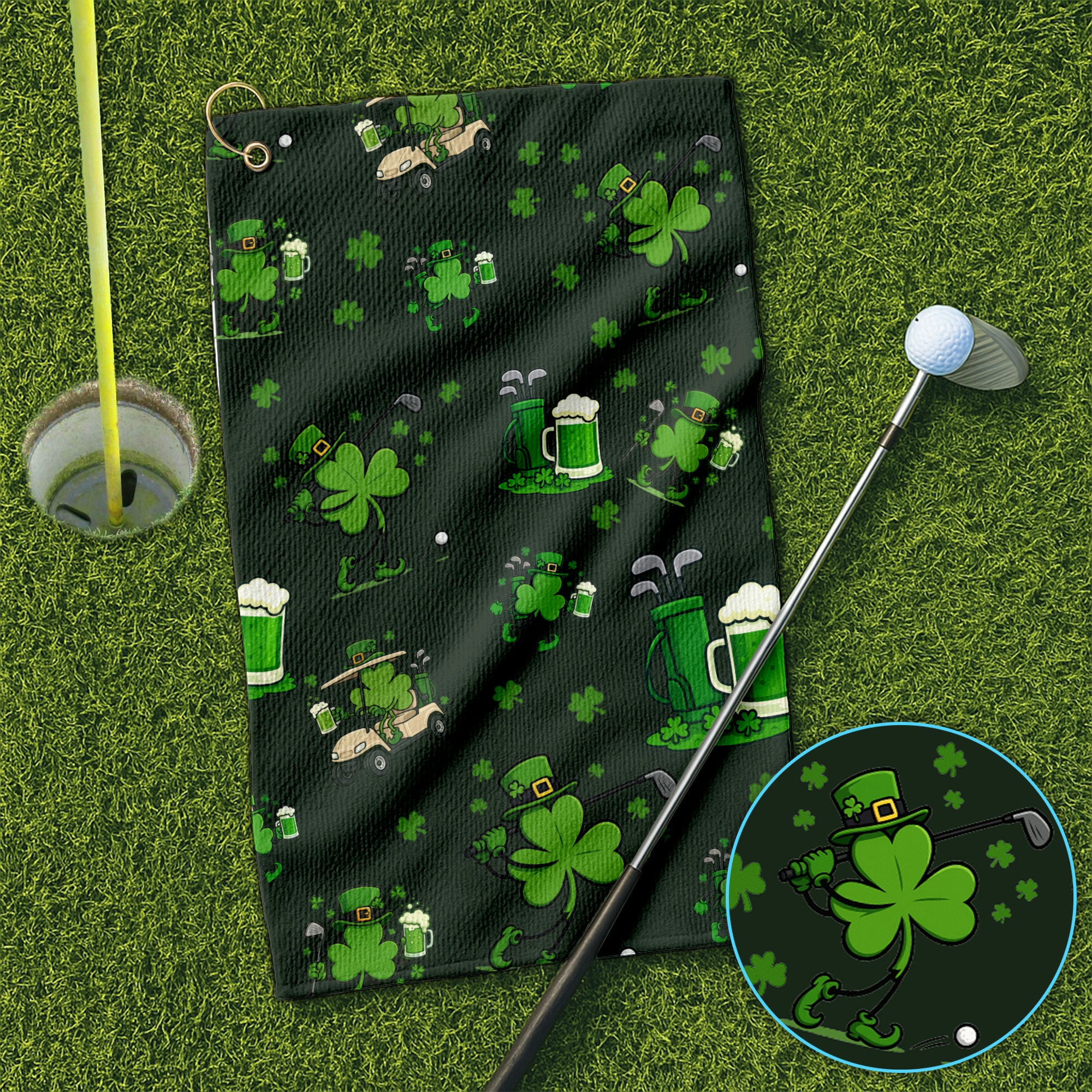 St. Patrick’s Day Pattern Golf Towel, Funny Irish Golf Cart Towels, Lucky Shamrock Golf TowelFor Men