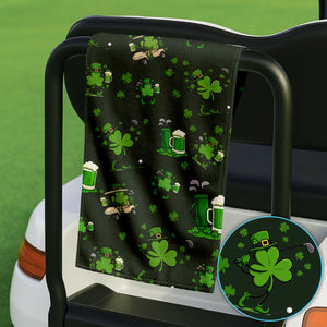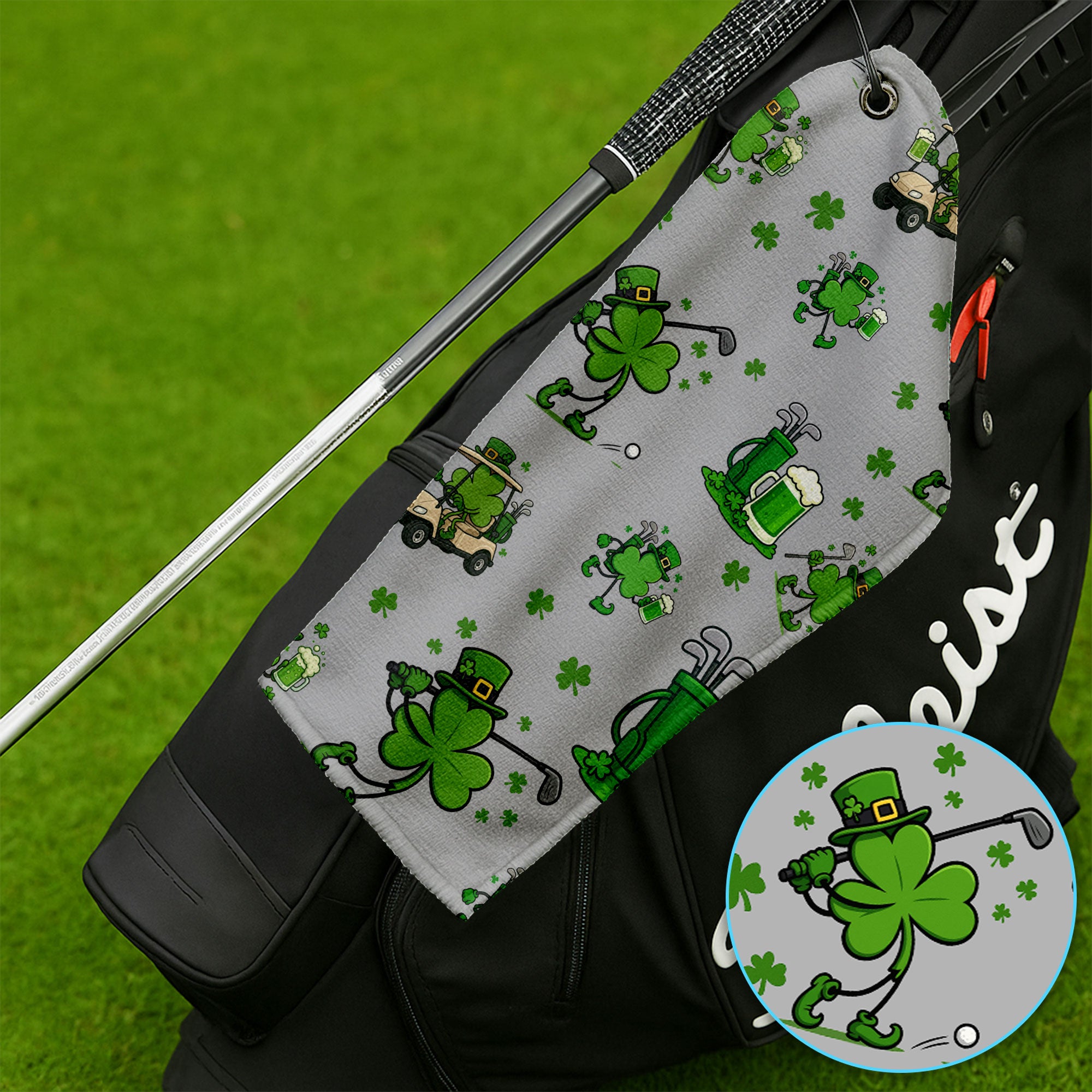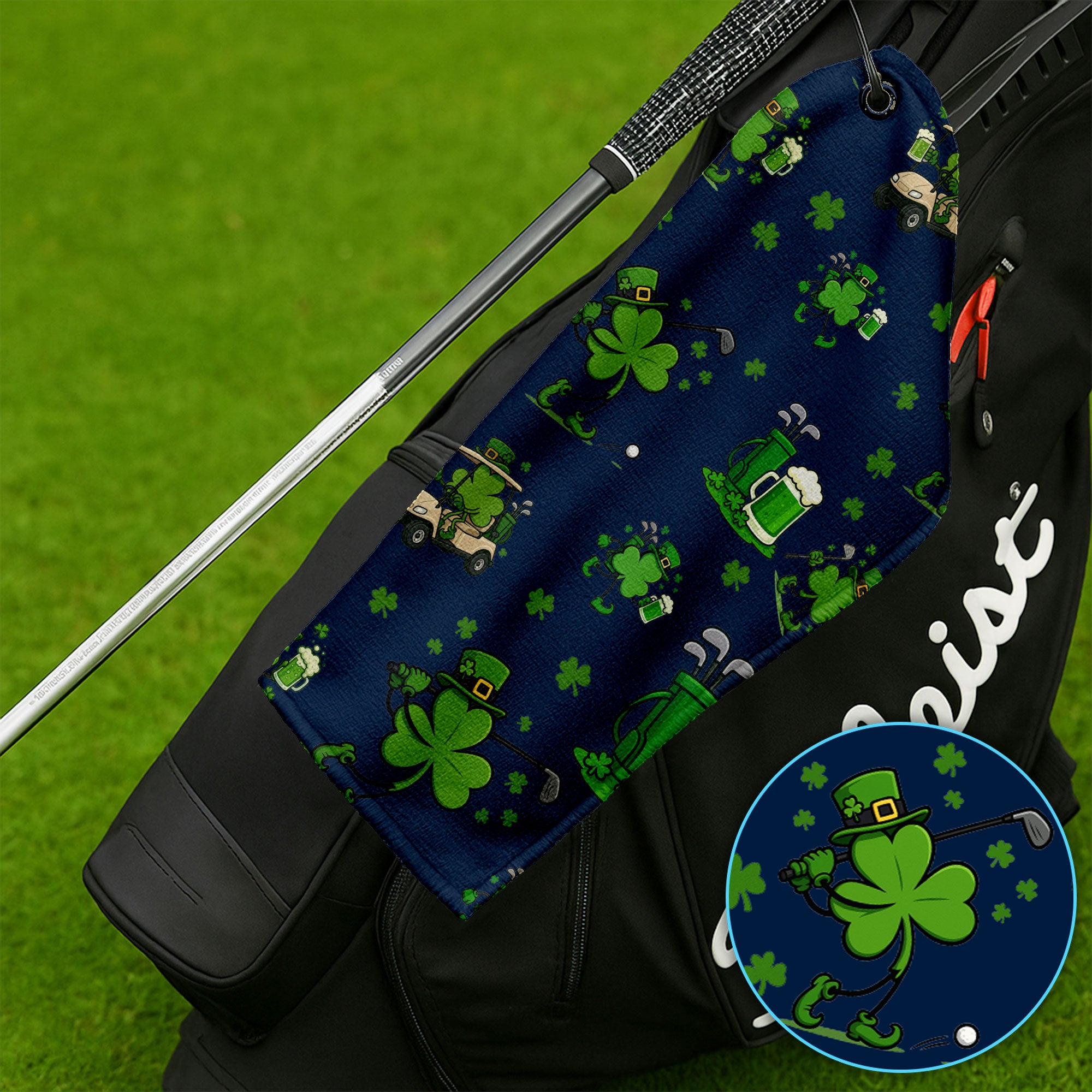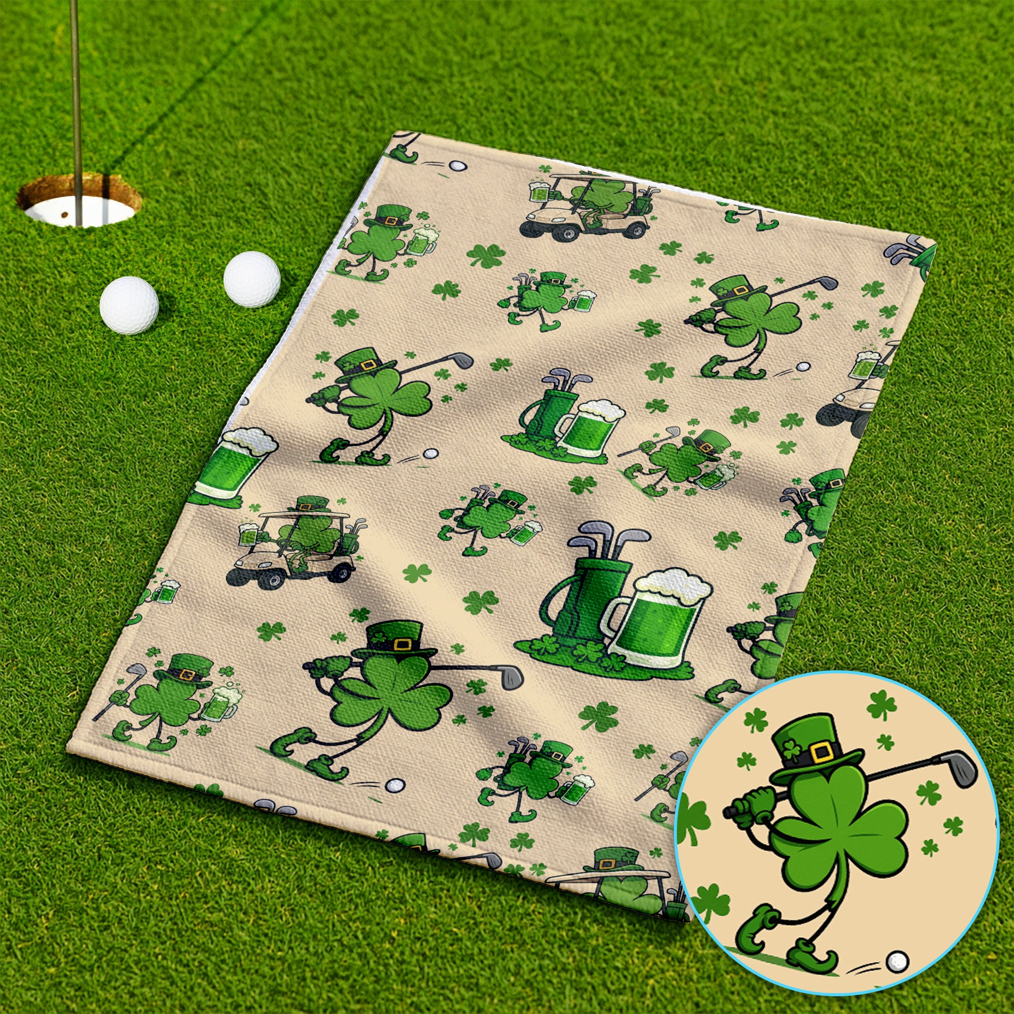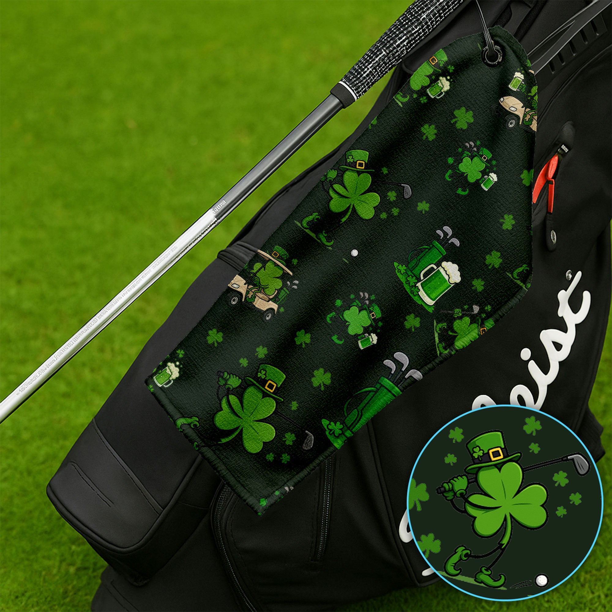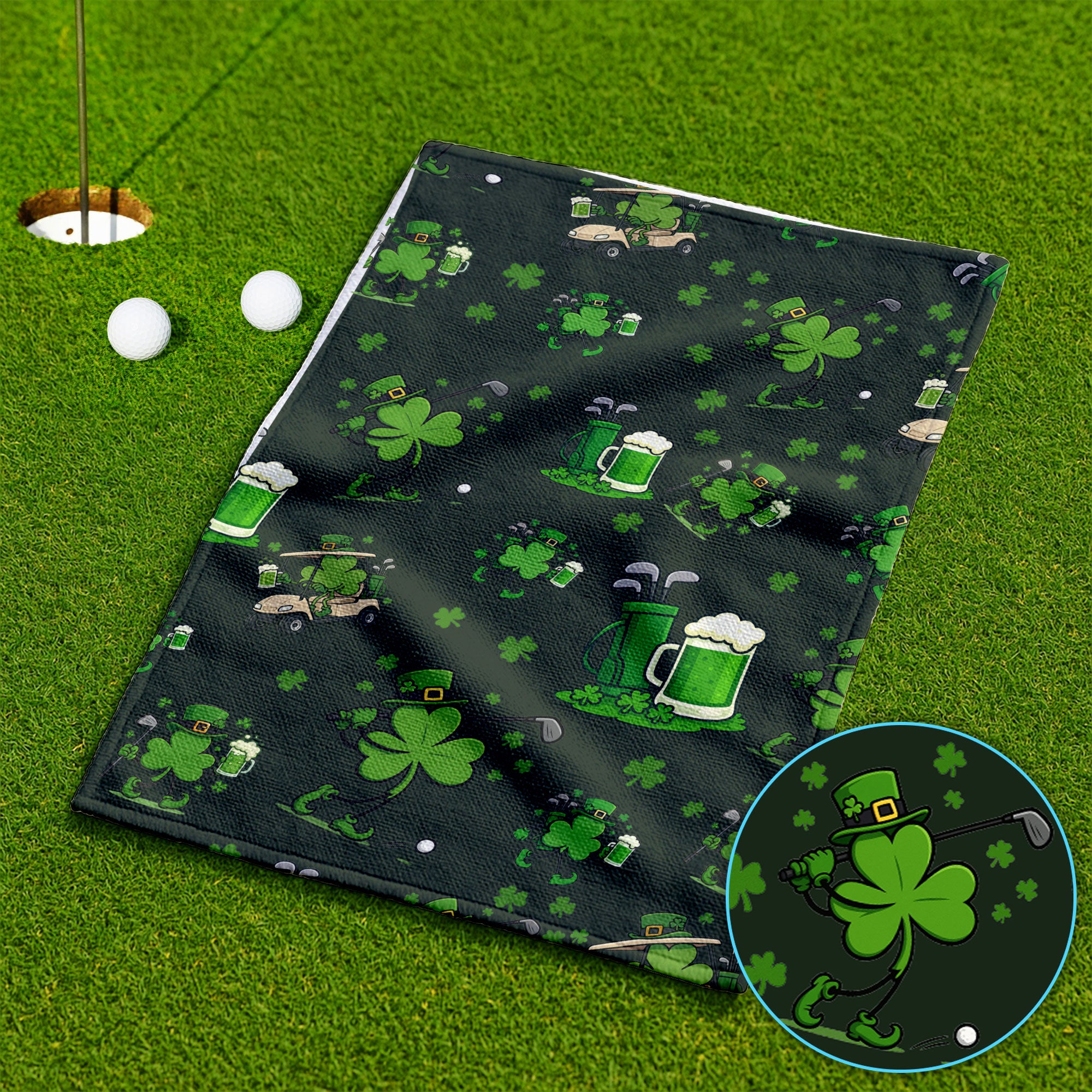 St. Patrick’s Day Pattern Golf Towel, Funny Irish Golf Cart Towels, Lucky Shamrock Golf TowelFor Men
