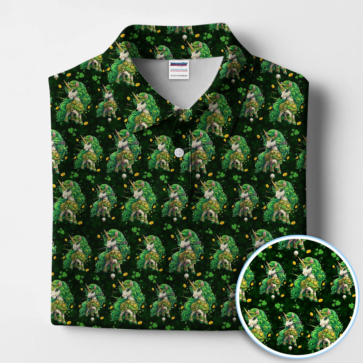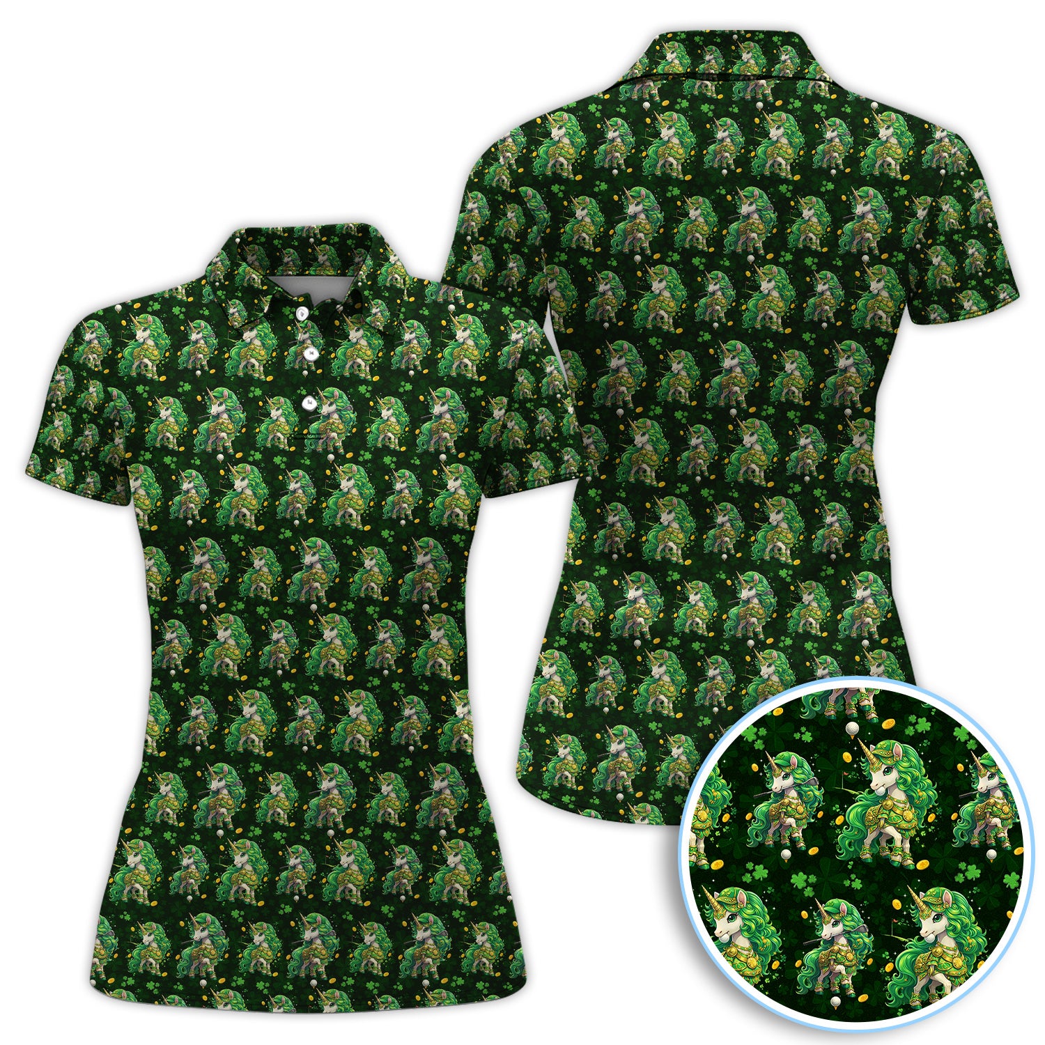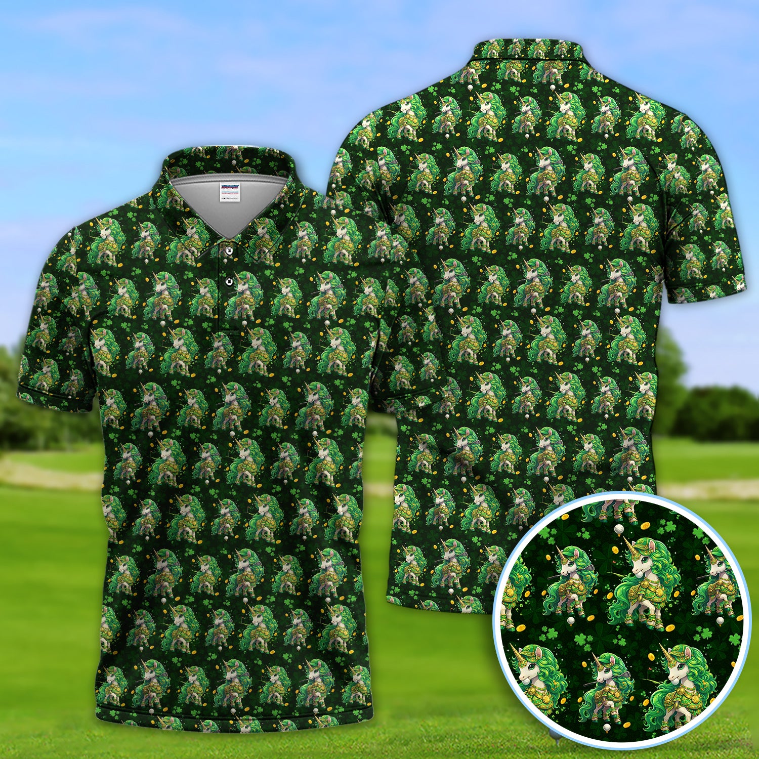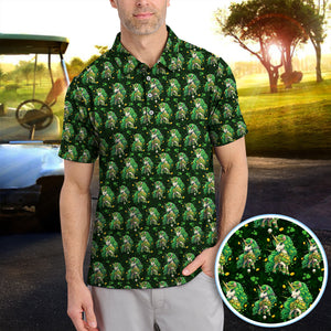 St. Patrick’s Day Unicorn Golf Polos, Green Shamrock Golf Shirt For Men, Golf Gift For Golfer
