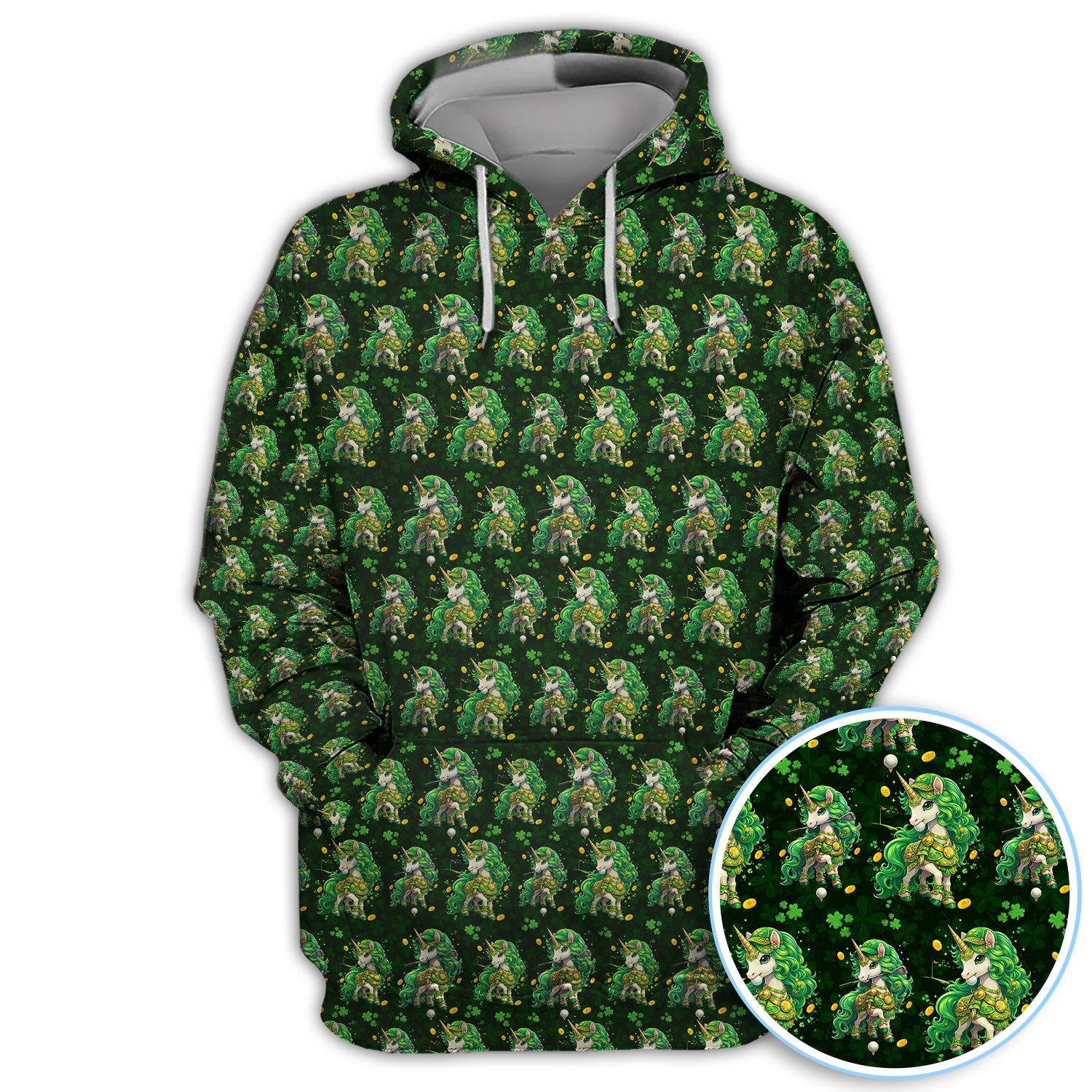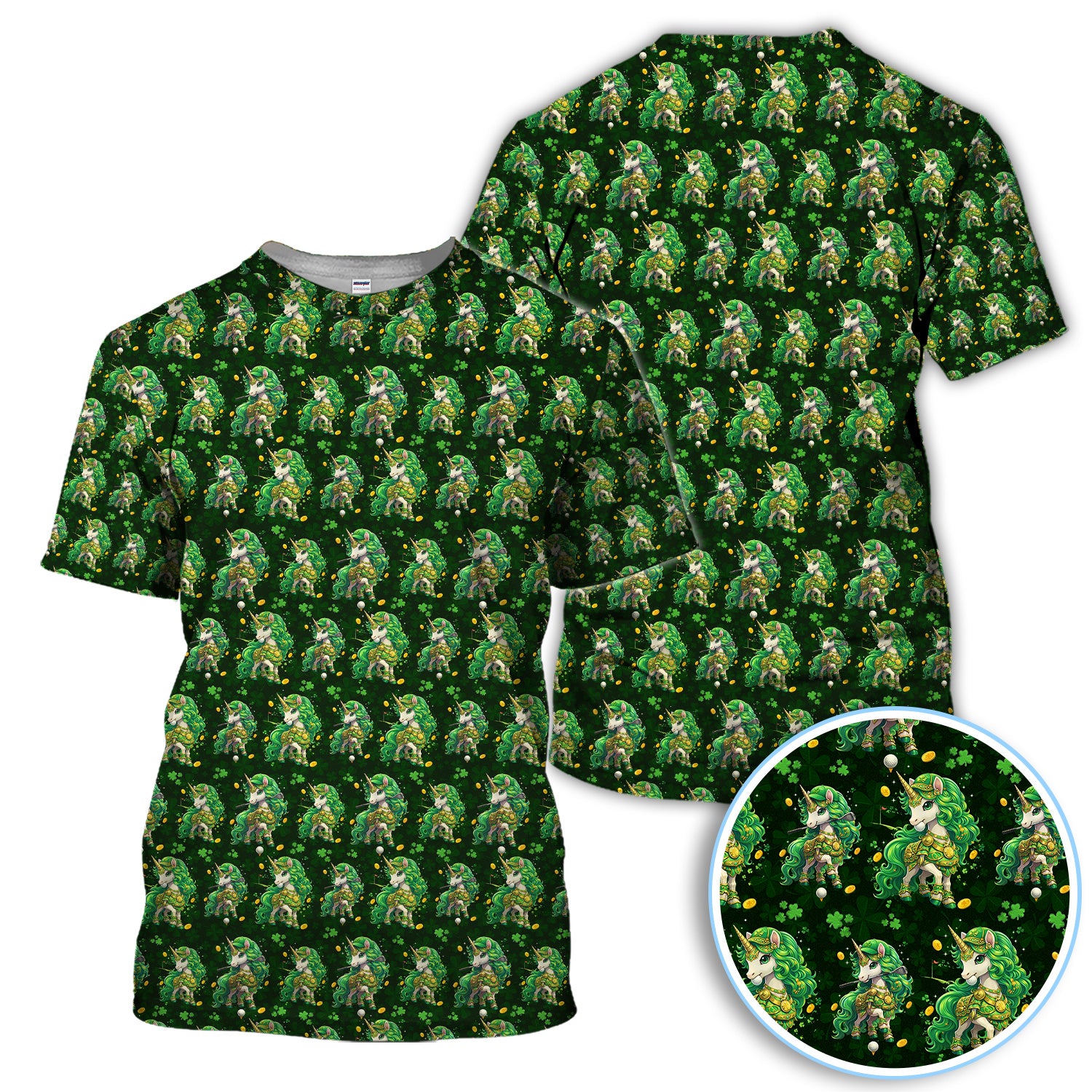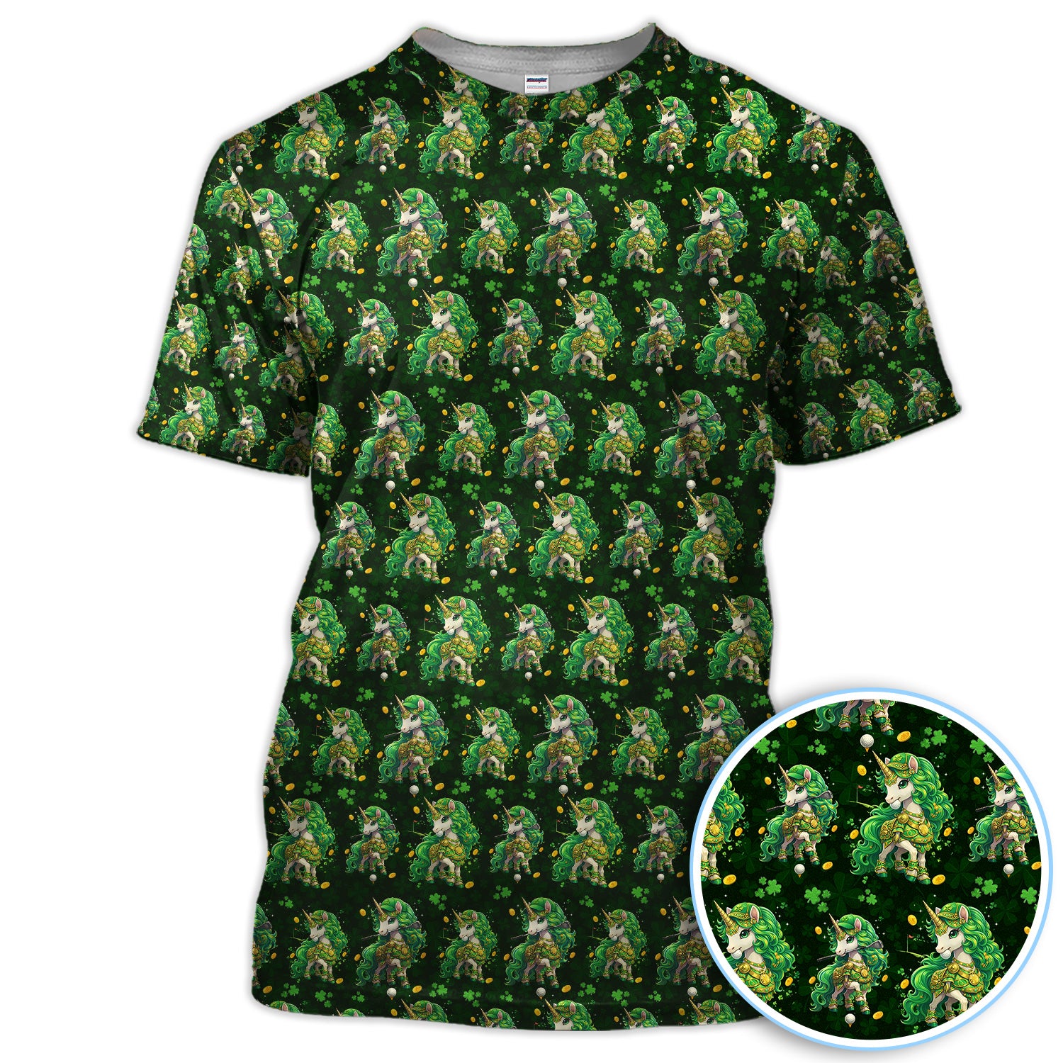 St. Patrick’s Day Unicorn Golf Polos, Green Shamrock Golf Shirt For Men, Golf Gift For Golfer