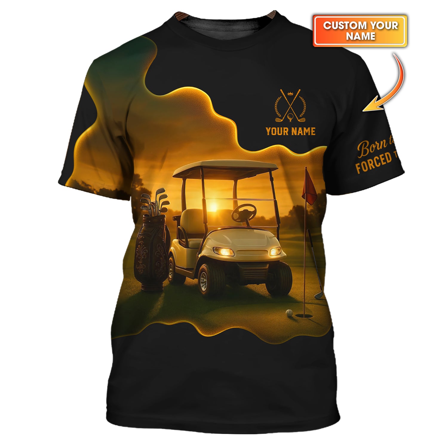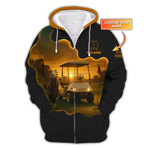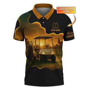 Sunset Golf Cart Custom Name Polos, Men's Golf Shirts, Funny Golf Shirt, Gift For Golfers