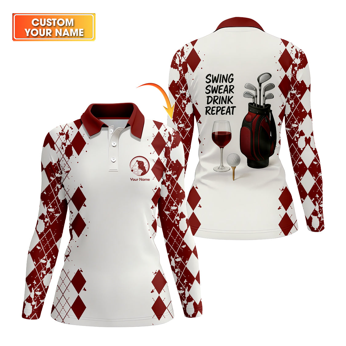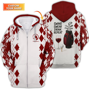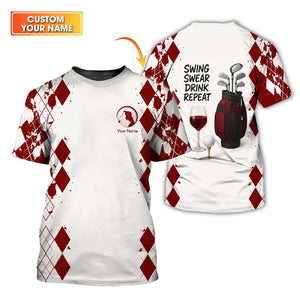 Swing Swear Drink Repeat Women's Golf Shirt, Funny Golf Wine Polos Custom Name, Golf Gift For Golfers