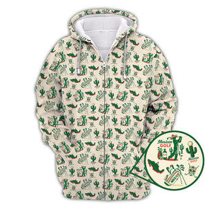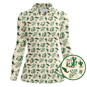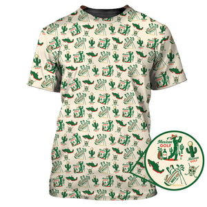 Tequila And Cactus Pattern Golf Shirt For Men, Crazy Golf Shirts, Mexican Golf Polos