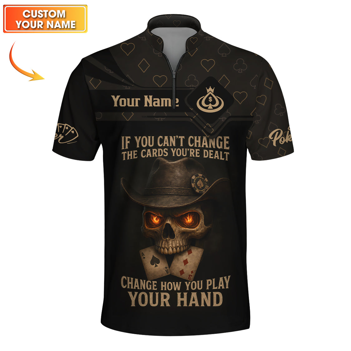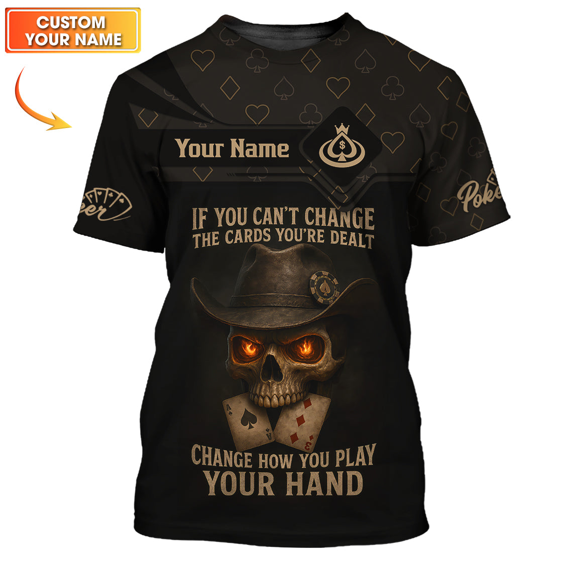 Texas Hold Em Shirts, Custom Name Poker Player Polos, Skull Poker Shirt