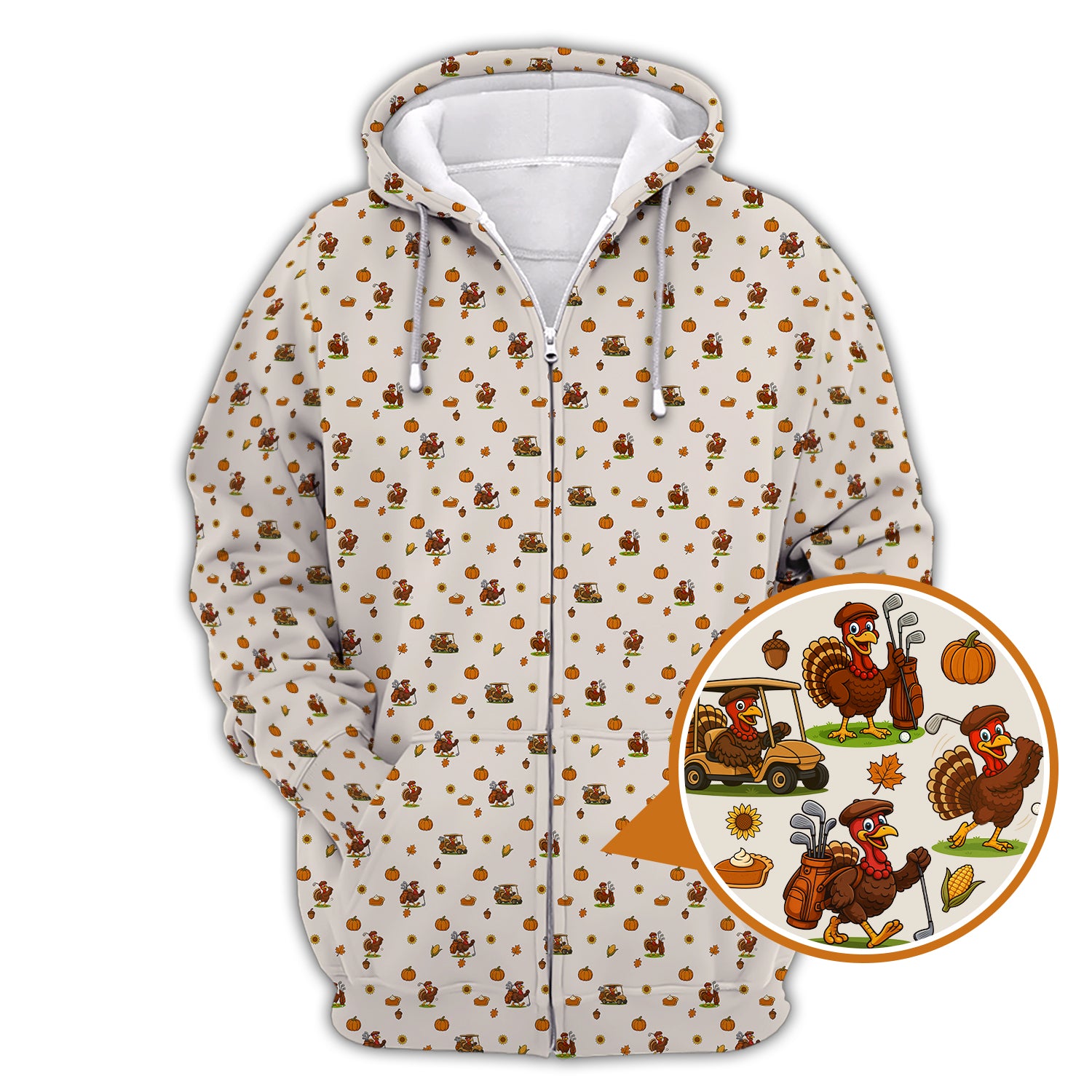 Thanksgiving Golf Shirt, Turkey Golf Shirt For Golfer, Funny Pattern Golf Shirt For Men