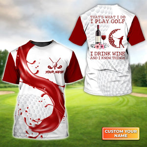 That's What I Do I Play Golf I Drink Wine, Personalized Name 3D Tshirt Gift For Golfer