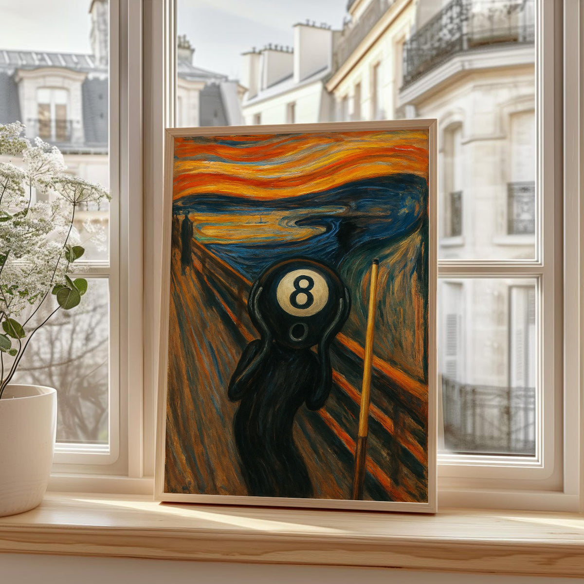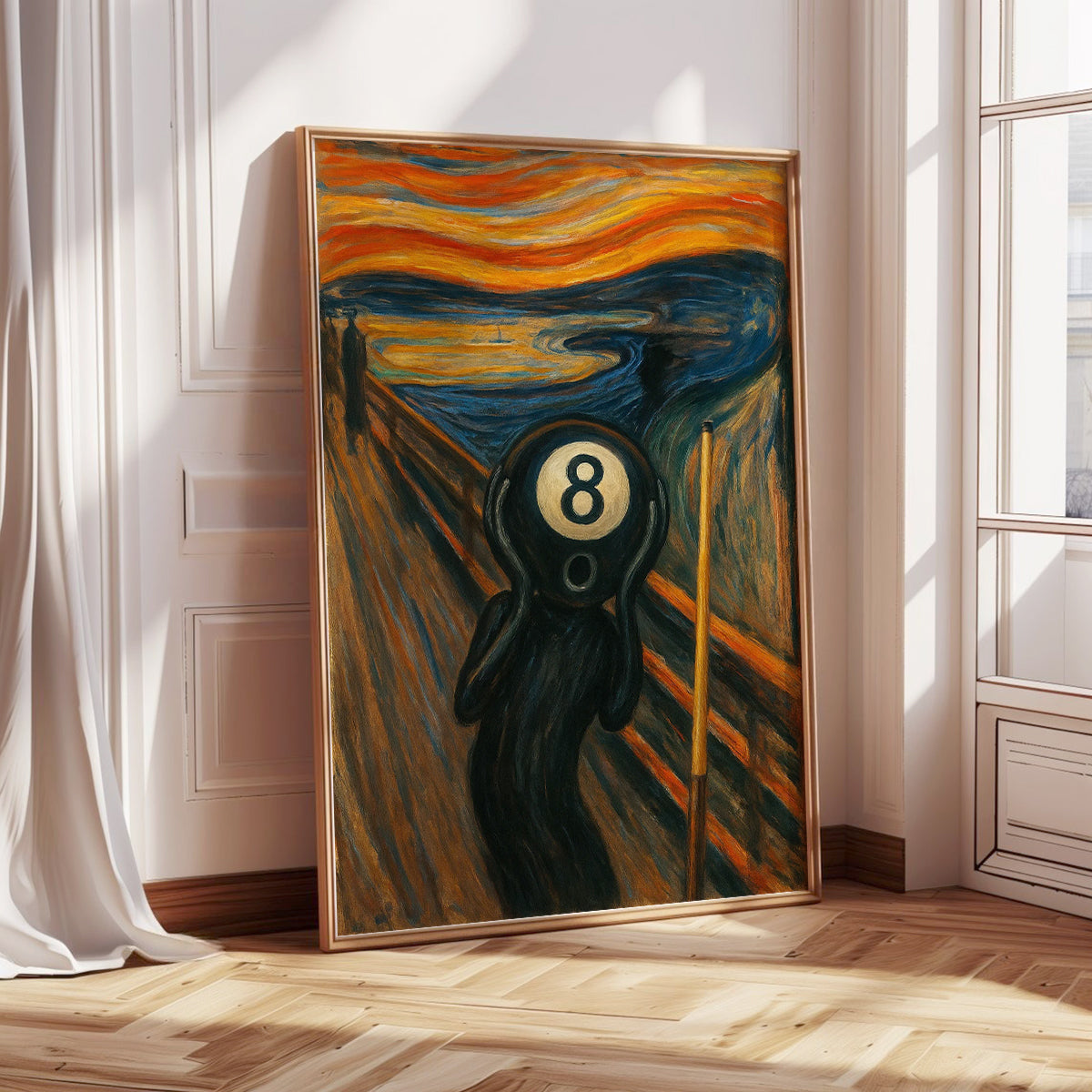 The Scream 8 Ball Poster Wall Art, Billiards Poster For Pool Player, Billiards Canvas Room Decor