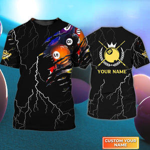 Thunder Billiard Ball Personalized Name 3D Tshirt For Billiard Player