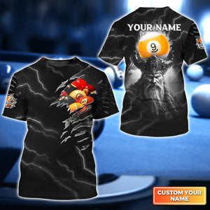 Thunder Viking Billiard Pool 9 Ball Personalized Name 3D Tshirt Gift For Billiard Players