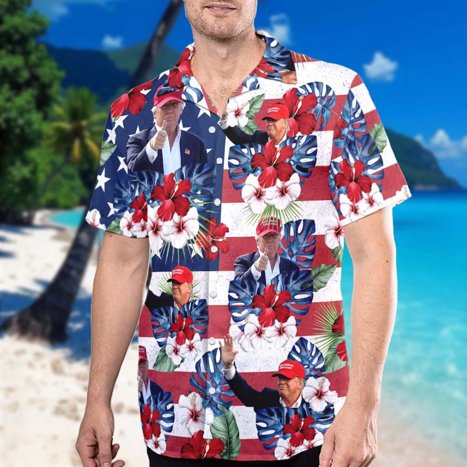 Trump Hawaiian Shirt, Men's 4th of July Shirts, Funny Trump Aloha Shirt