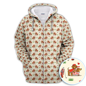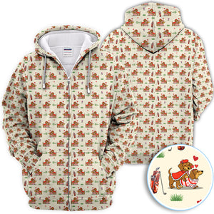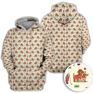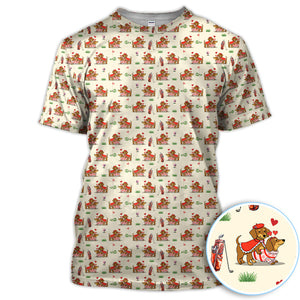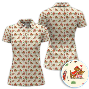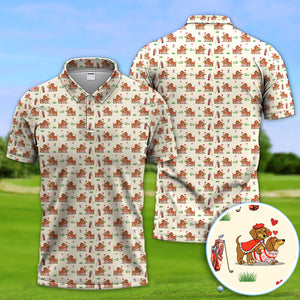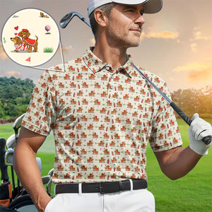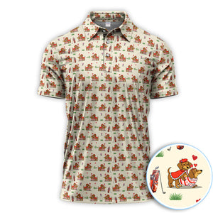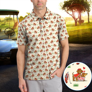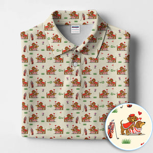 Valentine Dachshund Pattern Golf Shirt, Wiener Dog Love Golf Shirt, Golf Gift For Men