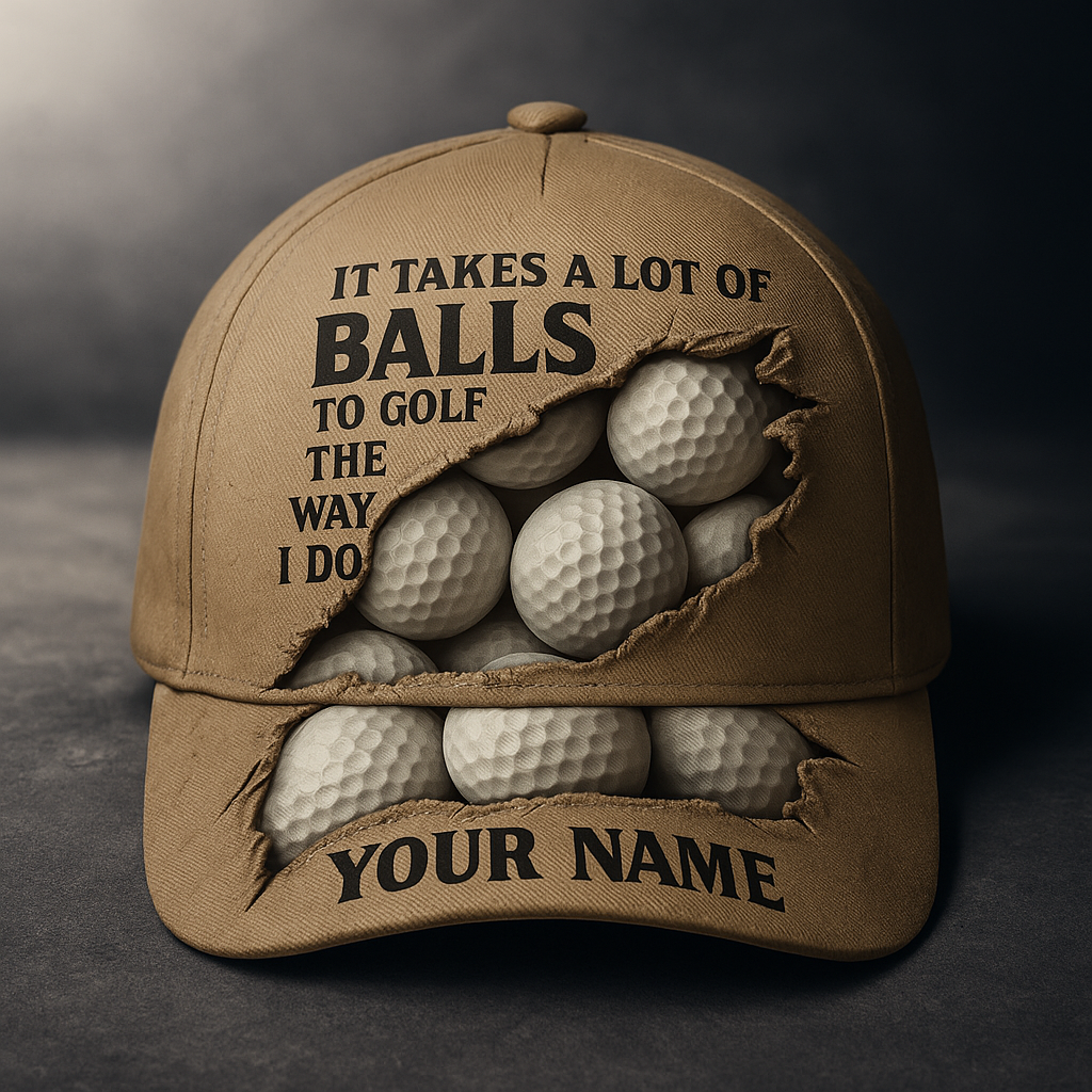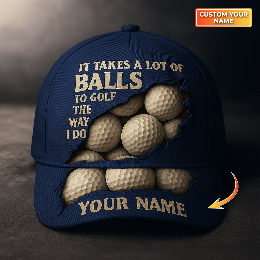 Vintage Golf Ball Cap, Funny “It Takes A Lot Of Balls To Golf The Way I Do” Custom Golf Hat, Personalized Golfer Gift For Men's