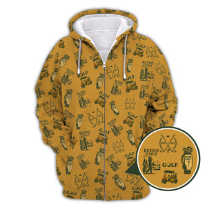 Vintage Golf Polos For Men, Classic Pattern Retro Golf Shirt, Golf Gift For Golfers
