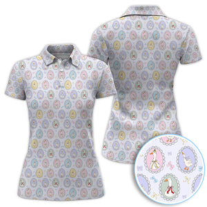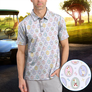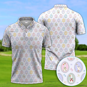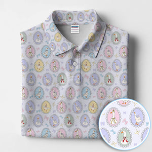 Vintage Goose Cameo Pattern Polo Shirt, Pastel Duck Ribbon Pattern Shirt, Gift For Golfer