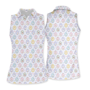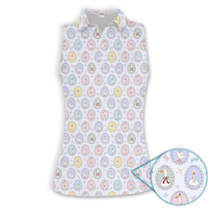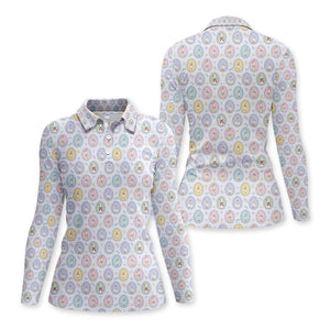 Vintage Goose Cameo Pattern Women Polo Shirt, Pastel Duck Ribbon Pattern Shirt, Gift For Golfer