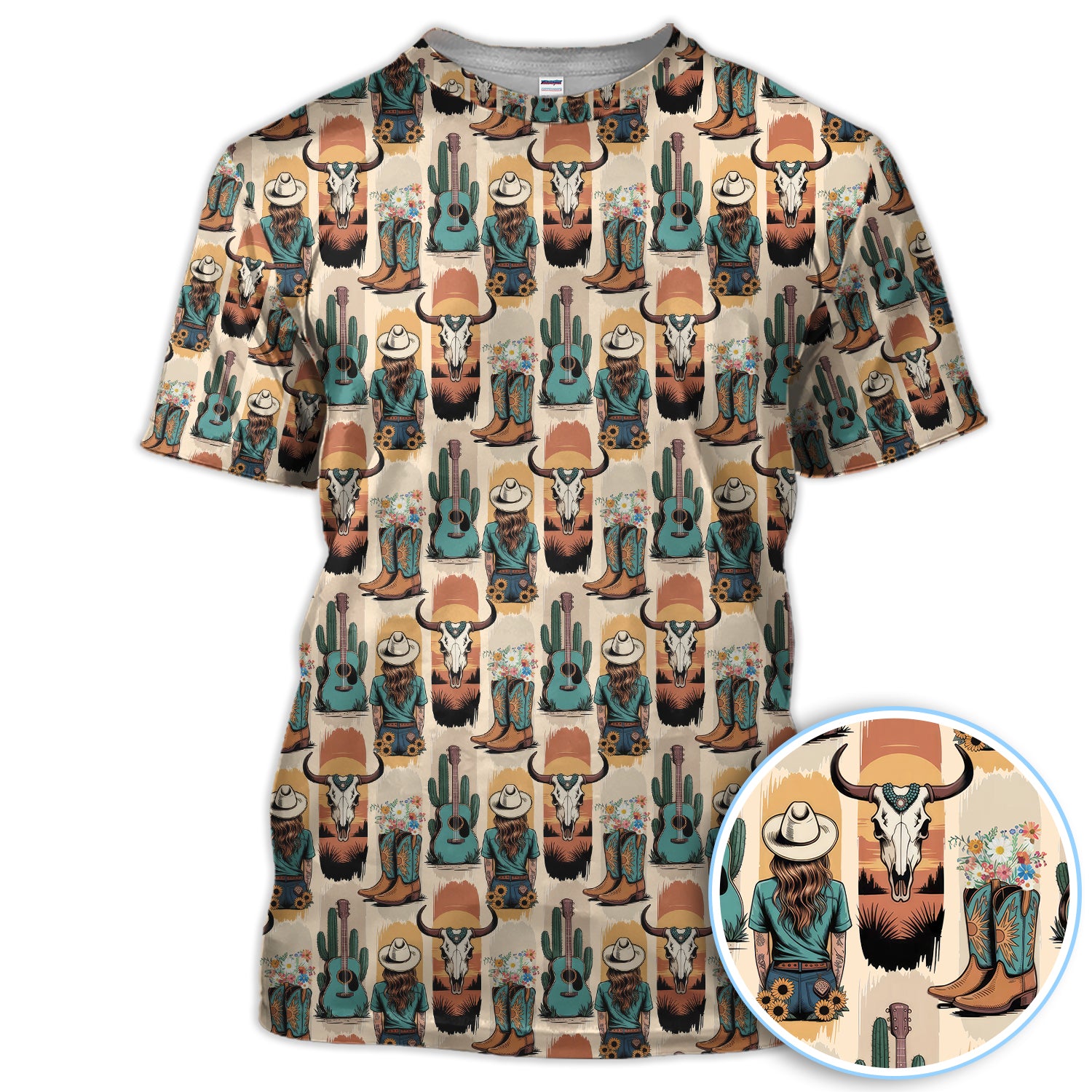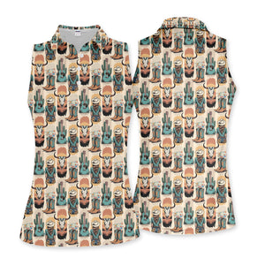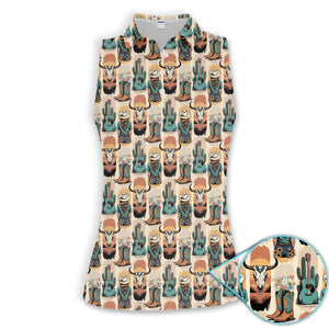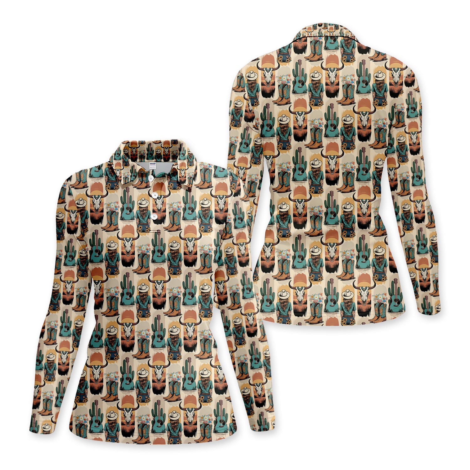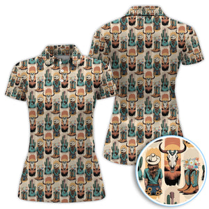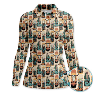 Western Boho Cowgirl Longhorn Cactus Pattern Shirt, Cowgirl Western Style Shirt For Women, Pattern Golf SHirt