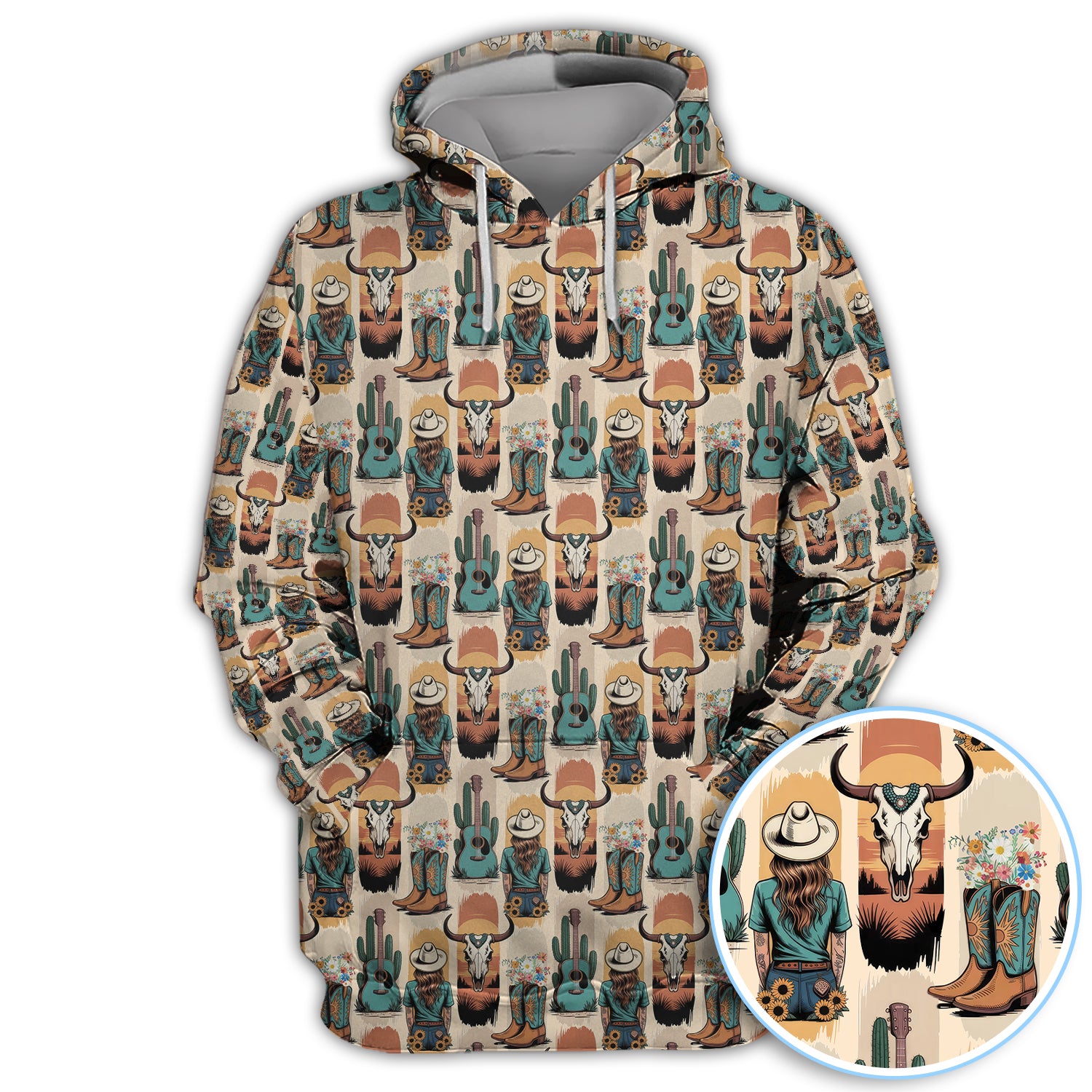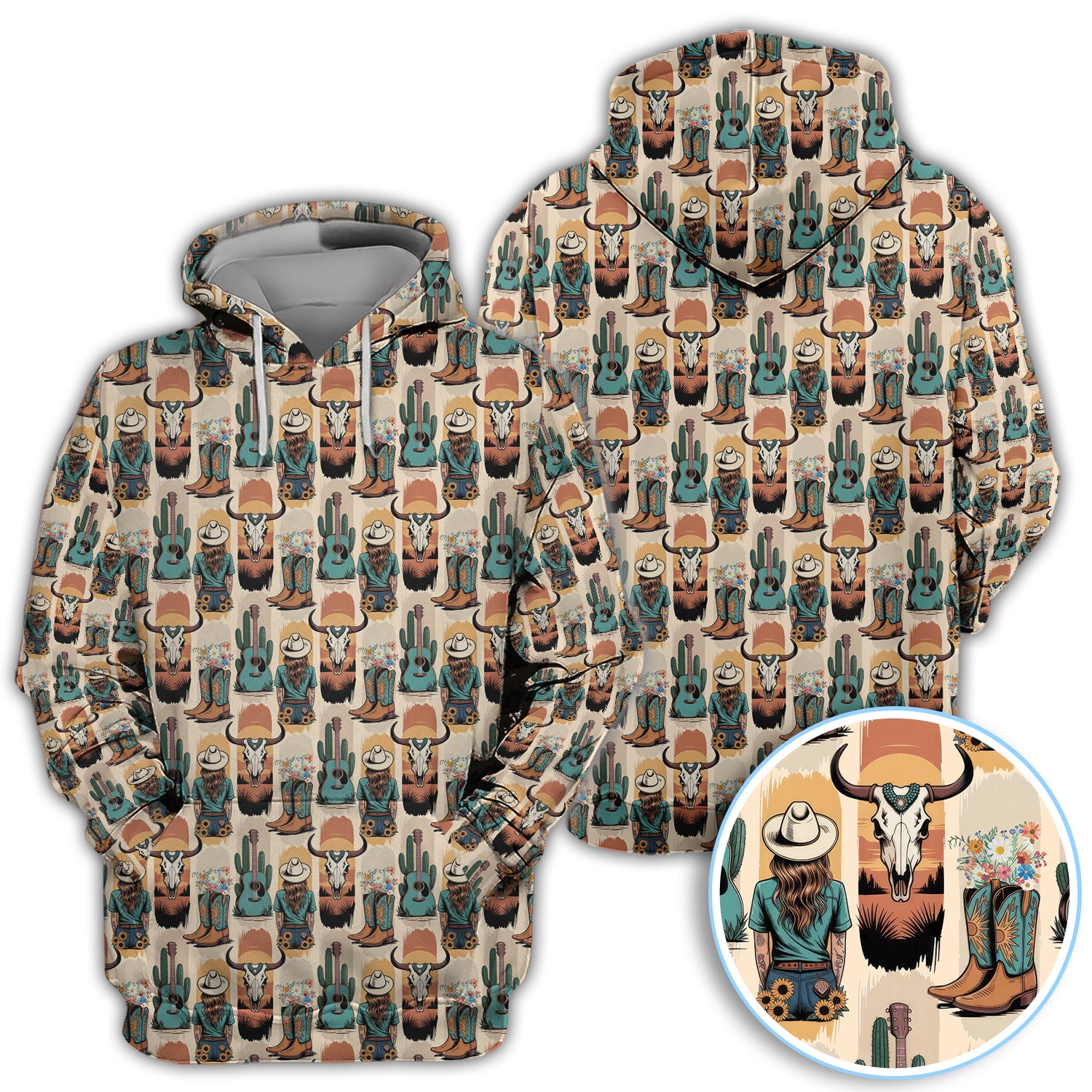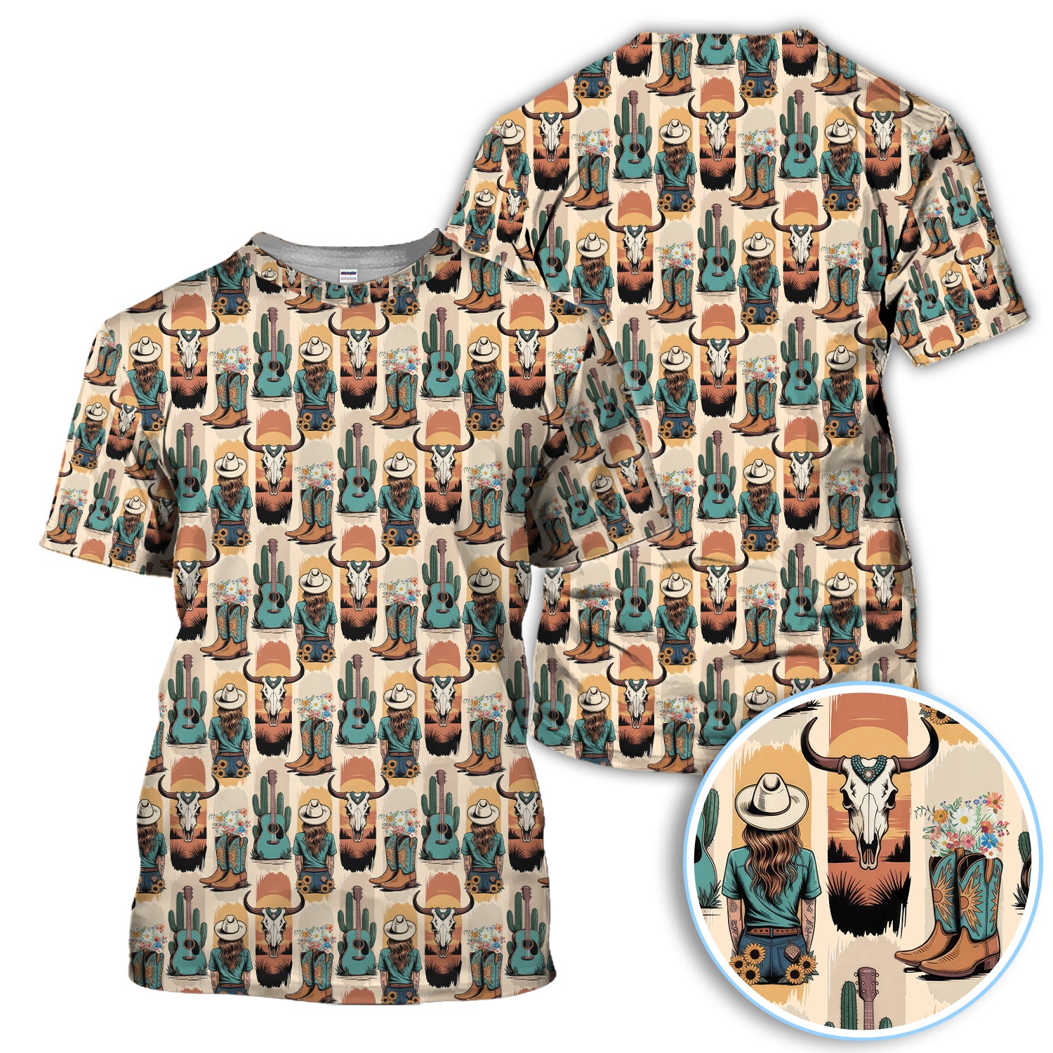 Western Boho Cowgirl Longhorn Cactus Pattern Shirt, Cowgirl Western Style Shirt For Women, Pattern Golf SHirt