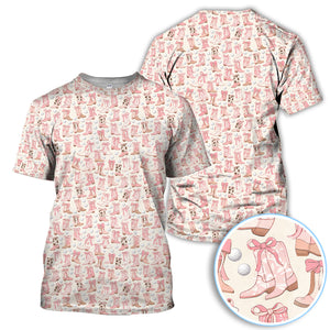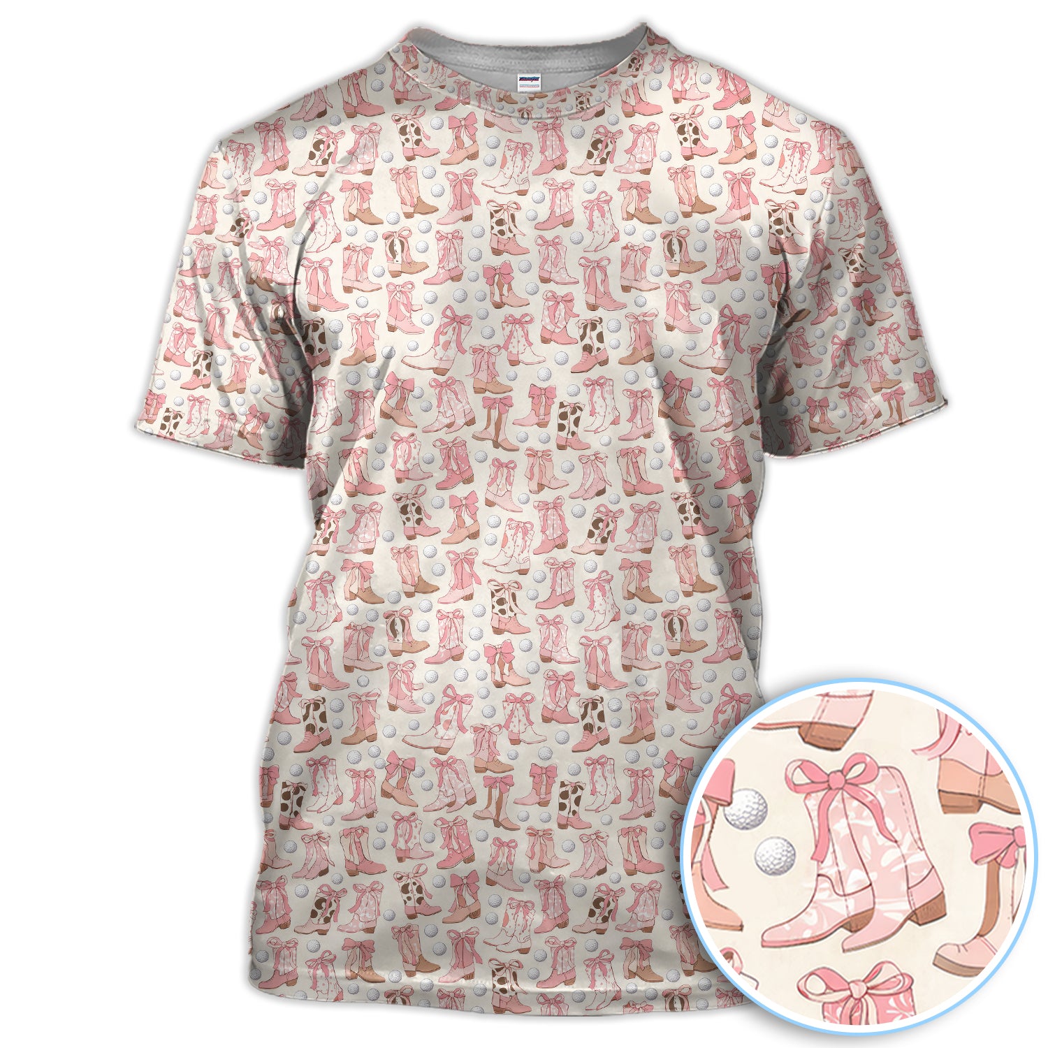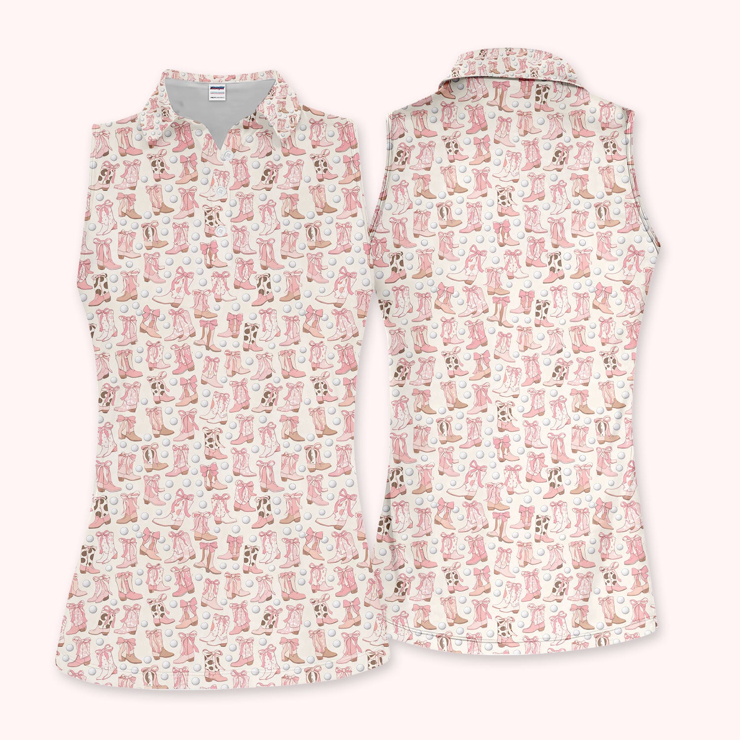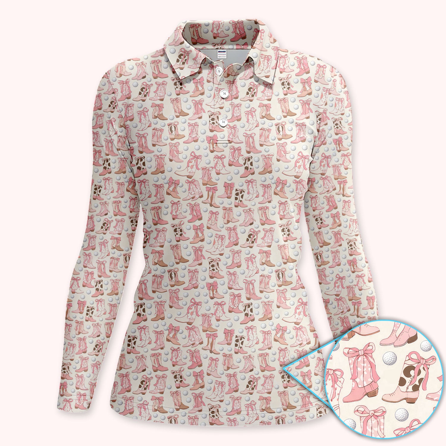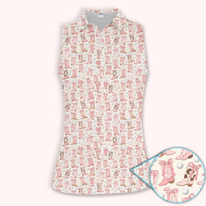 Western Boots Bow Golf Ball Pattern Golf Polos Shirt, Cowboy Loves Golf Shirt For Women, Golf Gift For Golfer