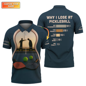 Why I Lose At Pickleball Shirt, Funny Custom Name Polos For Pickleball Players